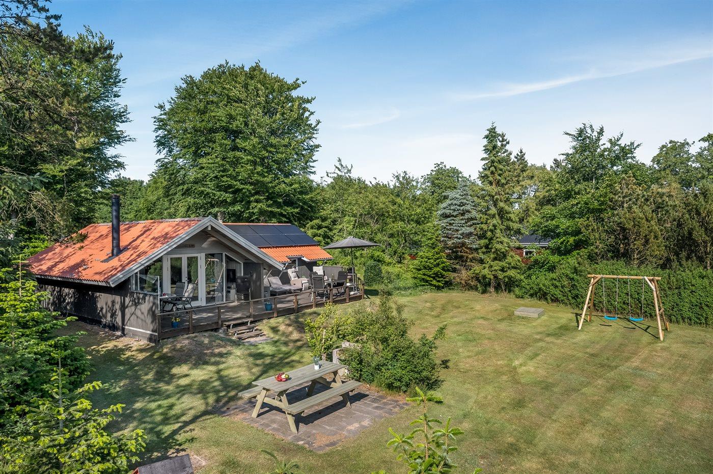 Et flot og virkelig velholdt sommerhus med skøn træterrasse. Huset, som er løbende renoveret, ligger på en grund, som grænser op mod et flot naturområde.
