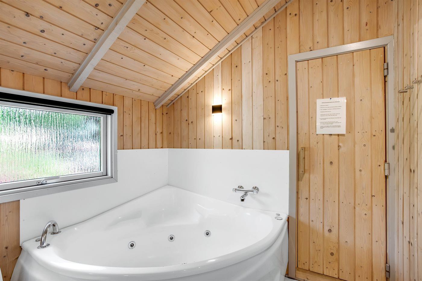 Der er 1 badeværelse med bruseniche og 1 toilet.. Der er gulvvarme på 1 badeværelse. I saunaen er der mulighed for afslapning.