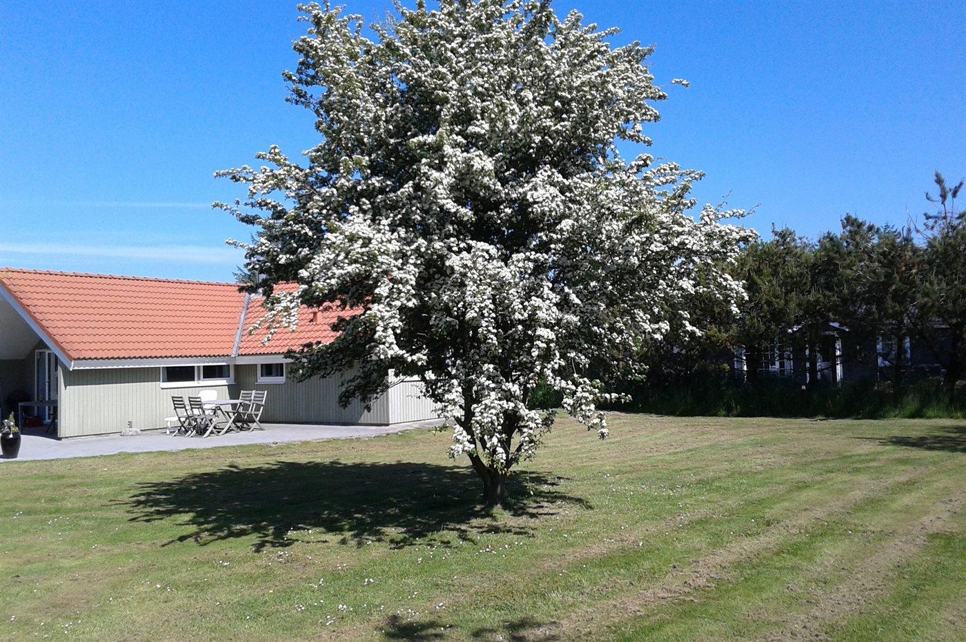 Ferieboligen er beliggende på en 1553 m² stor naturgrund. Der er 12000 m til havet. Nærmeste forretning er beliggende i en afstand af 550 m. Til ferieboligen hører 150 m² terrasseareal. Desuden er der 30 m² overdækket terrasse. Gynge. Sandkasse. Der er carport til rådighed. Parkering ved ferieboligen.