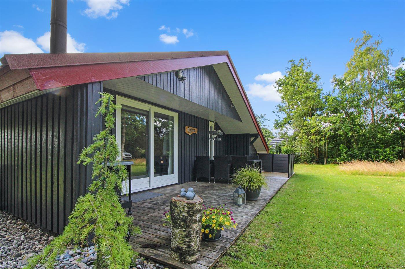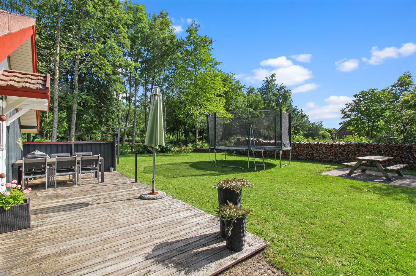 Ferieboligen er beliggende på en 1500 m² stor naturgrund. Der er 10000 m til havet. Nærmeste forretning er beliggende i en afstand af 500 m. Til ferieboligen hører 40 m² terrasseareal. Desuden er der 10 m² overdækket terrasse. Sandkasse. Trampolin. Bålsted. Shelter. Grill til rådighed. Der er carport til rådighed. Parkering ved ferieboligen.