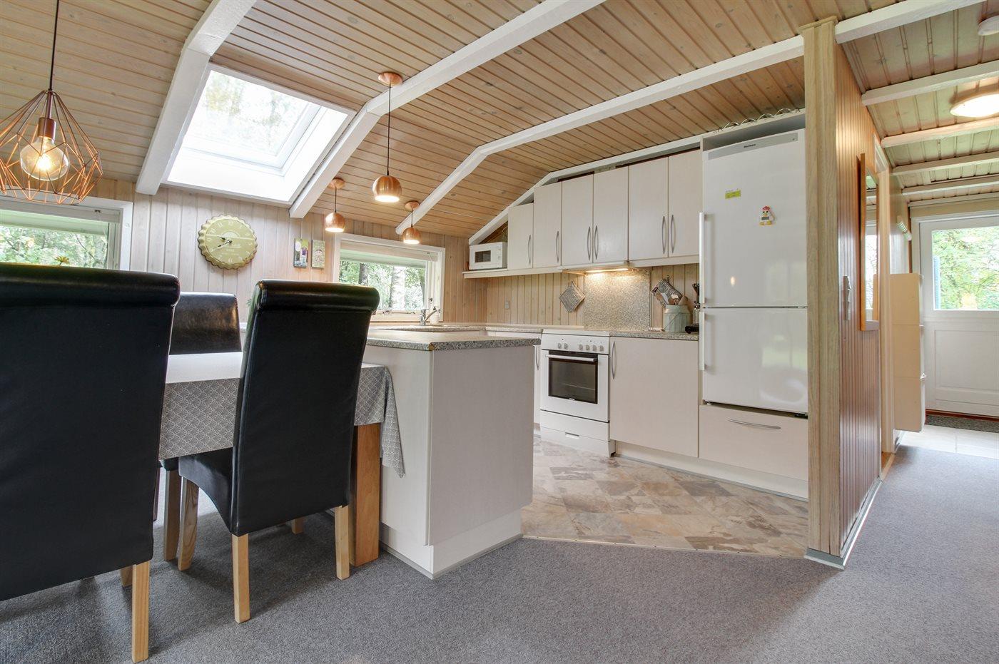 Køkkenet er udstyret med 1 køleskab. Der er 4 keramiske kogeplader, varmluftovn, mikrobølgeovn samt opvaskemaskine.