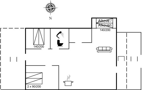 Der er i alt 2 soveværelser. Sovepladserne fordeler sig på: 4 sovepladser i dobbeltsenge. 2 sovepladser i alkove.