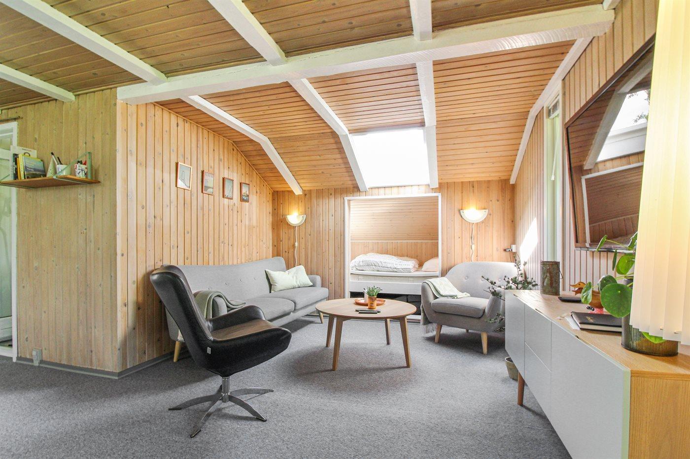Dette pæne og lyst indrettede sommerhus ligger på en delvis lukket naturgrund med bålplads og shelter samt legeredskaber. Bemærk, at 2 af sovepladserne befinder sig i en alkove i opholdsstuen. Bemærk ingen husdyr.