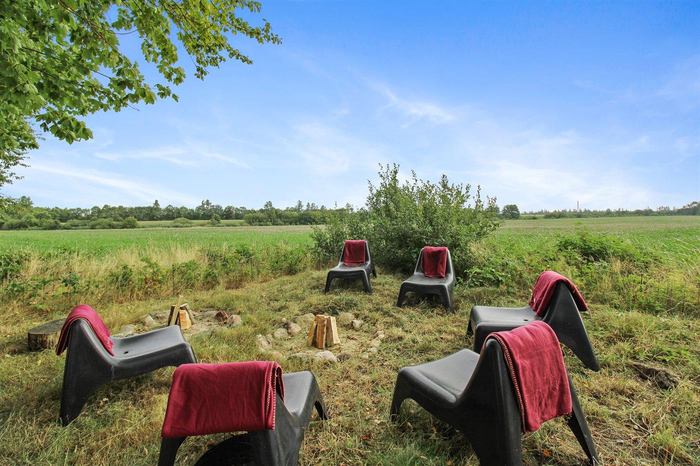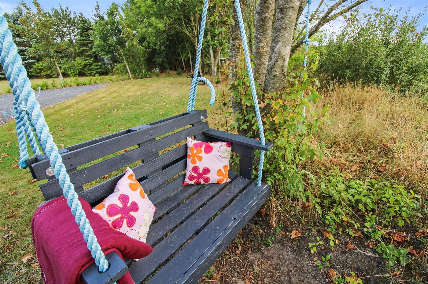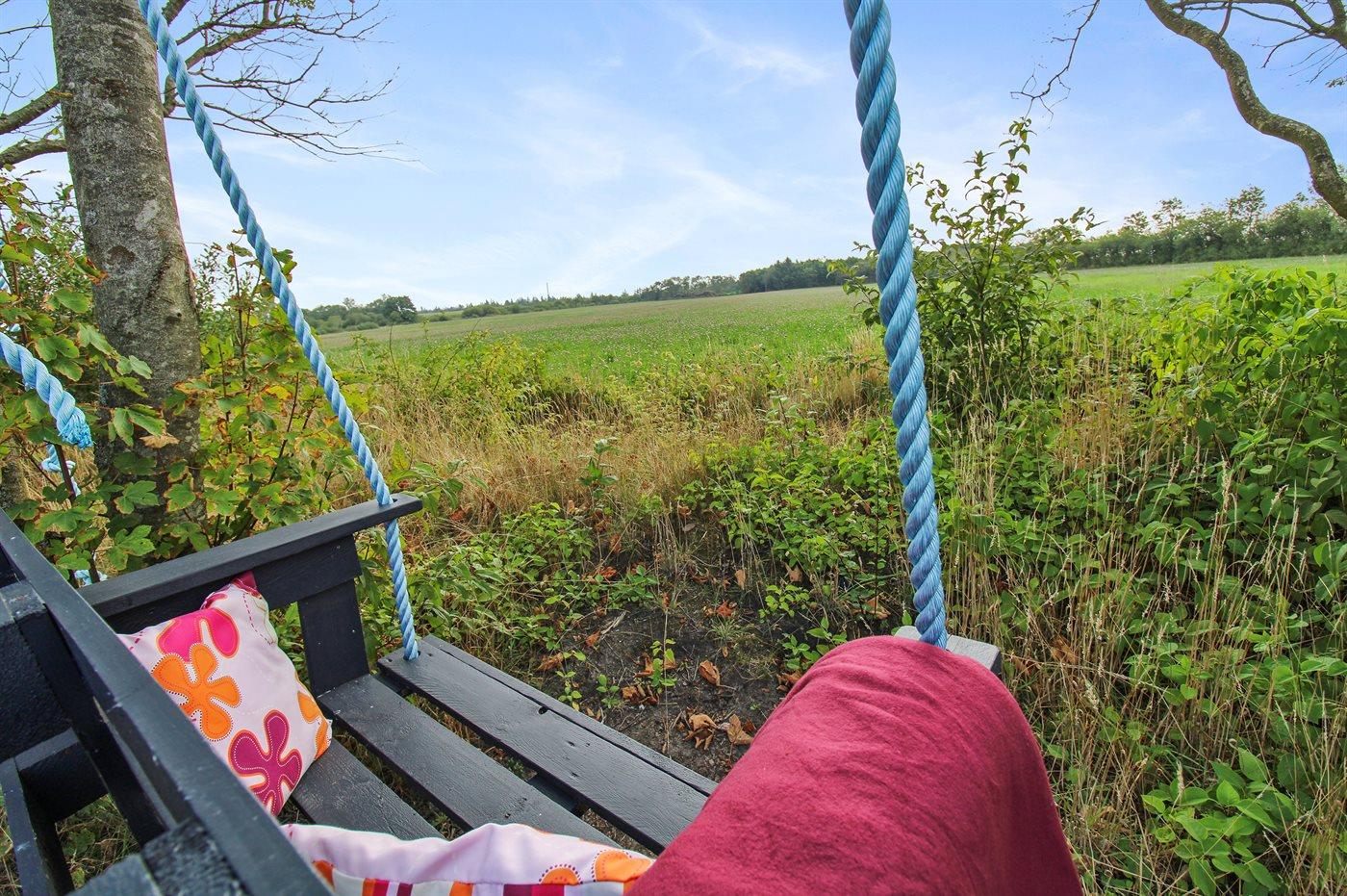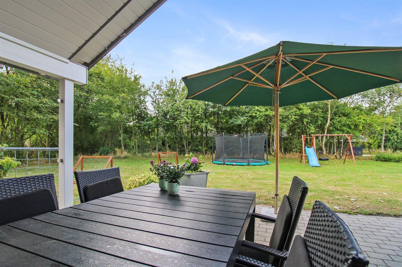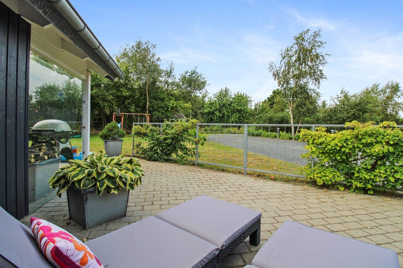 Ferieboligen er beliggende på en 1580 m² stor naturgrund. Der er 12000 m til havet. Nærmeste forretning er beliggende i en afstand af 700 m. Til ferieboligen hører 80 m² terrasseareal. Desuden er der 12 m² overdækket terrasse. Gynge. Sandkasse. Trampolin. Rutchebane. Bålsted. 1 gasgrill står til rådighed. Der er installeret stik til opladning af elbil. Parkering ved ferieboligen.