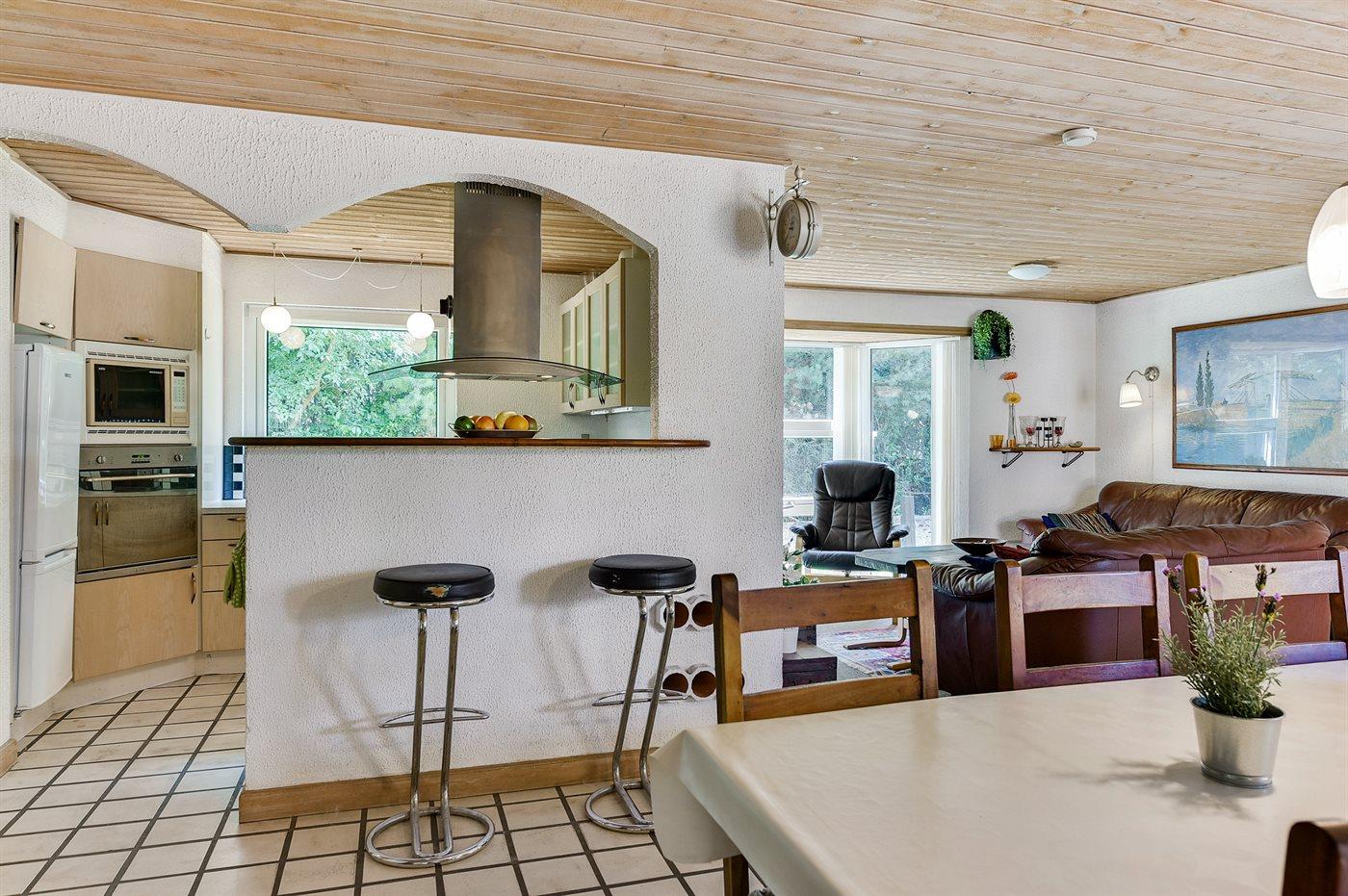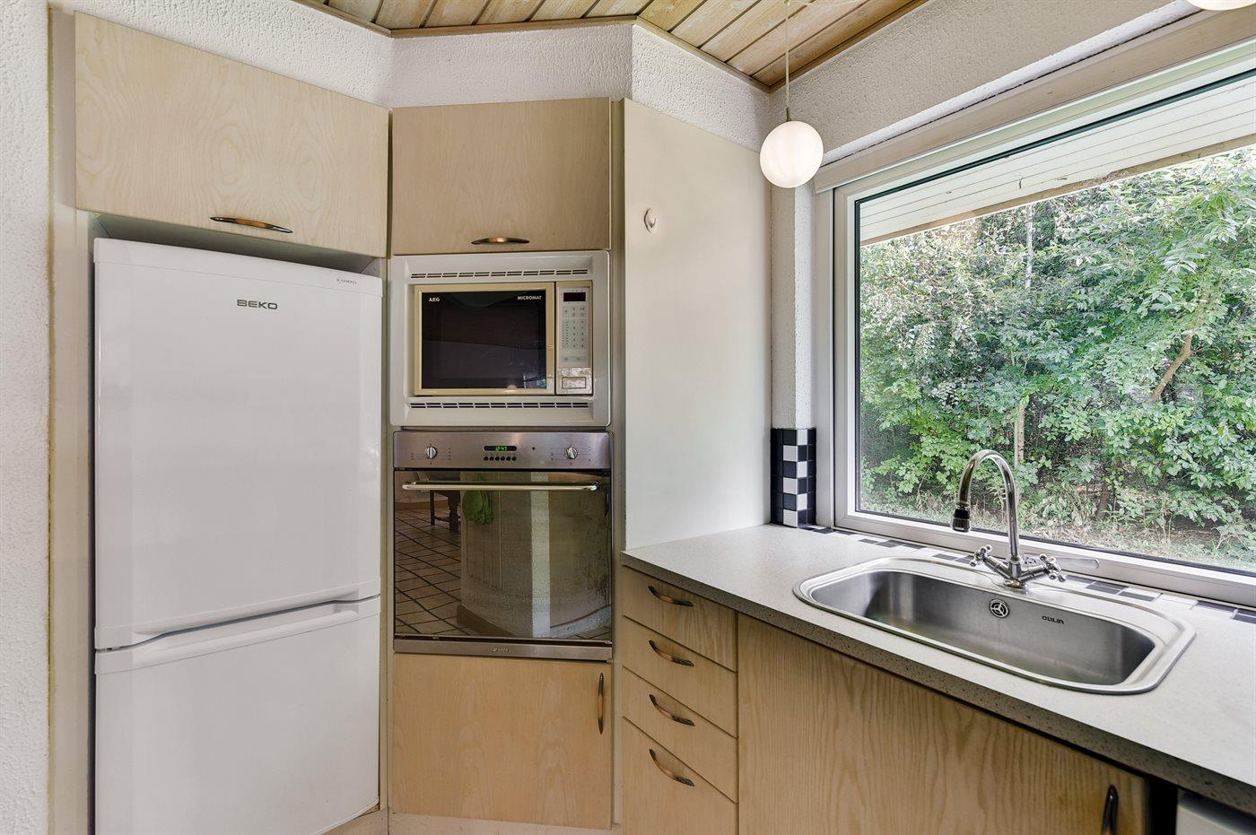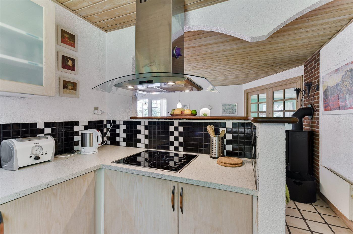 Feriehuset er bl.a. udstyret med motionscykel, vaskemaskine, tørretumbler, opvaskemaskine, køleskab, indbygningsovn med varmluft, 4 keramiske kogeplader, mikrobølgeovn, kaffemaskine samt vandkoger mv. Der er to badeværelser, og begge er med bruseniche og WC. I det ene badeværelse findes der desuden Sensorstyret håndtørrer.