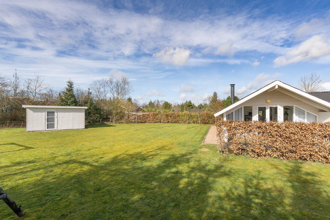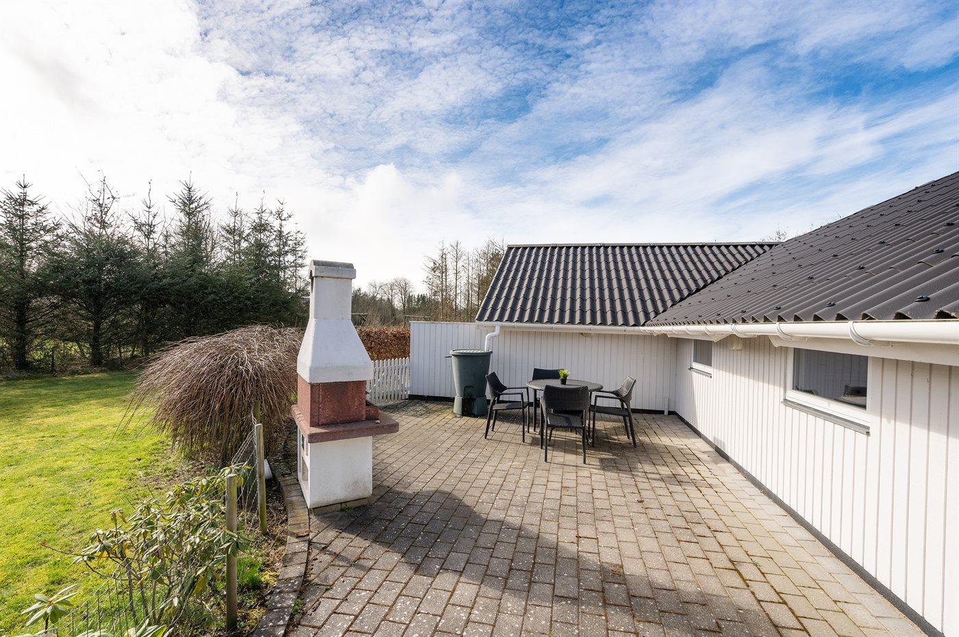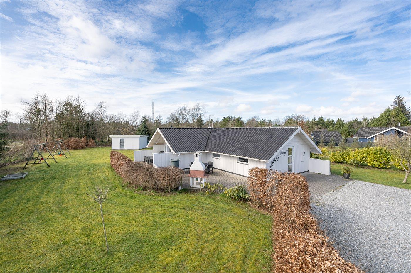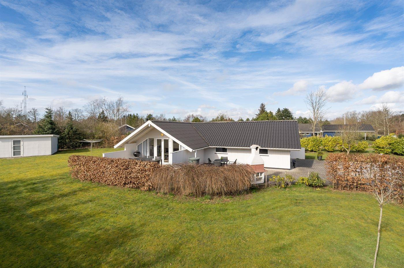Ferieboligen er beliggende på en 1587 m² stor naturgrund. Grunden er indhegnet. Der er 12000 m til havet. Nærmeste forretning er beliggende i en afstand af 550 m. Til ferieboligen hører 60 m² terrasseareal. Desuden er der 6 m² overdækket terrasse. Gynge. Sandkasse. Grill til rådighed. Parkering ved ferieboligen.