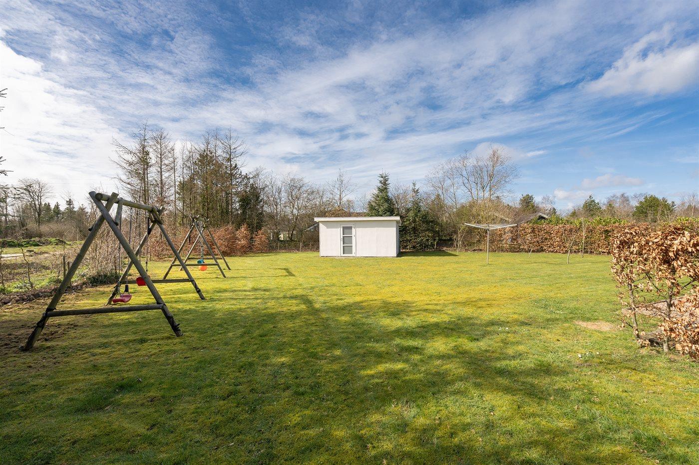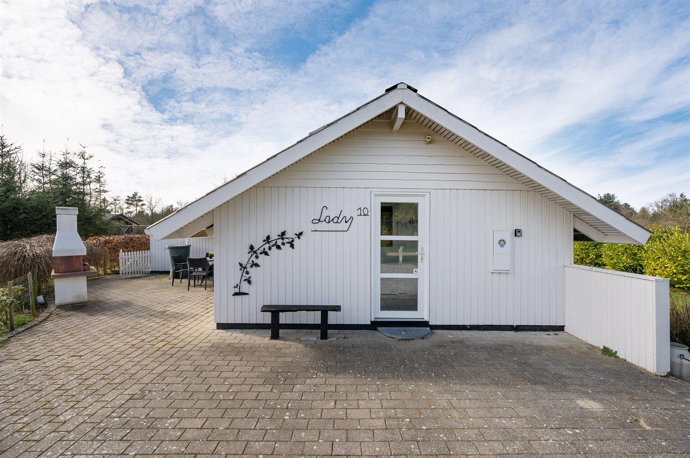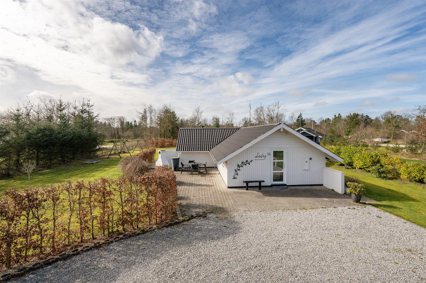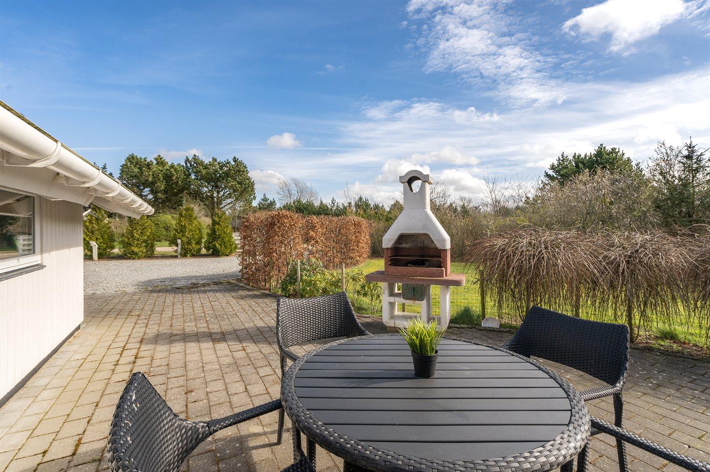 Ferieboligen er beliggende på en 1587 m² stor naturgrund. Grunden er indhegnet. Der er 12000 m til havet. Nærmeste forretning er beliggende i en afstand af 550 m. Til ferieboligen hører 60 m² terrasseareal. Desuden er der 6 m² overdækket terrasse. Gynge. Sandkasse. Grill til rådighed. Parkering ved ferieboligen.