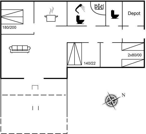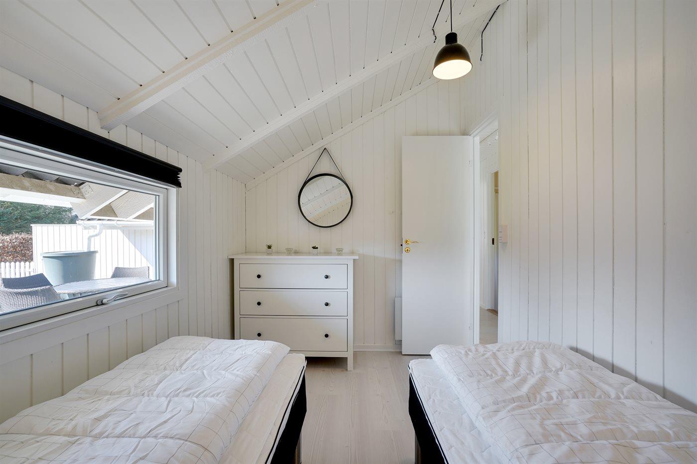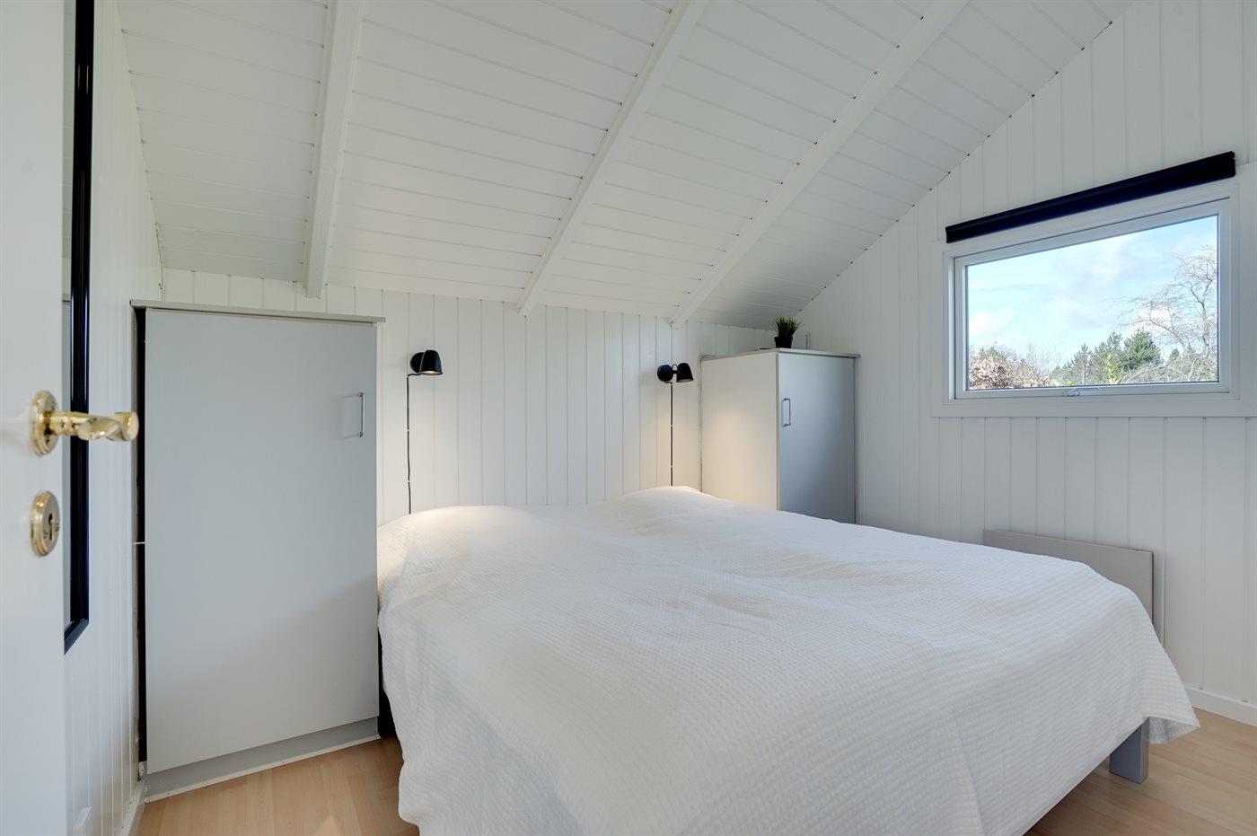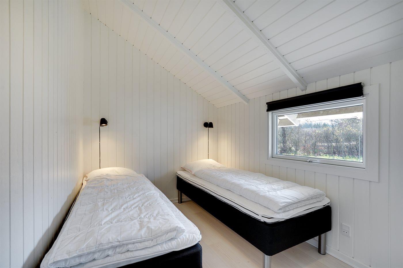 Der er i alt 3 soveværelser. Sovepladserne fordeler sig på: 4 sovepladser i dobbeltsenge. 2 sovepladser i enkeltsenge.
