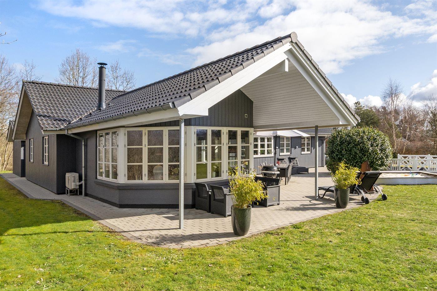 Ferieboligen er beliggende på en 1986 m² stor havegrund. Der er 11000 m til havet. Nærmeste forretning er beliggende i en afstand af 500 m. Til ferieboligen hører åbent terrasseareal. Desuden er der overdækket terrasse. Gynge. Sandkasse. Legehus. Legetårn. Rutchebane. Fodboldmål. Der ligger en legeplads i en afstand af 500 m. Grill til rådighed. Der er garage til rådighed. Parkering ved ferieboligen.