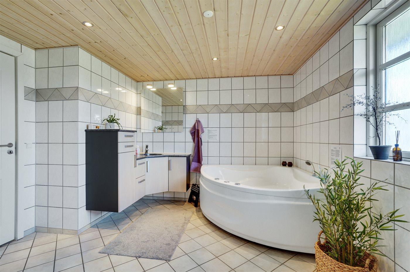 Der er 2 badeværelser med bruseniche og 2 toiletter. Der er gulvvarme på 2 badeværelser. I saunaen er der mulighed for afslapning.