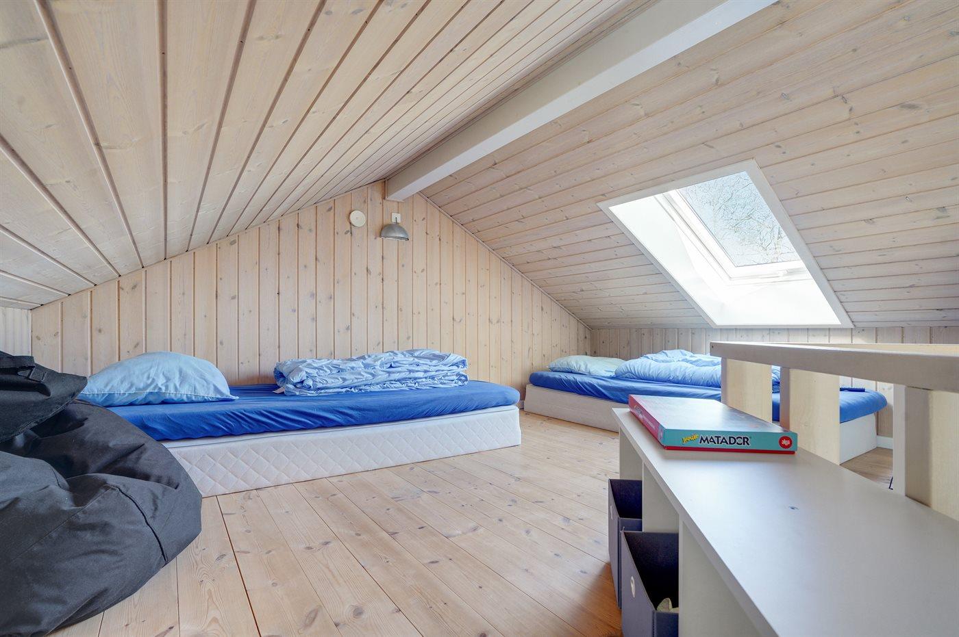 Der er i alt 3 soveværelser. Sovepladserne fordeler sig på: 6 sovepladser i dobbeltsenge. 4 sovepladser på madrasser. 4 af disse sovepladser fordeler sig på 2 hemse. Derudover er der 2 stk. barnesenge.