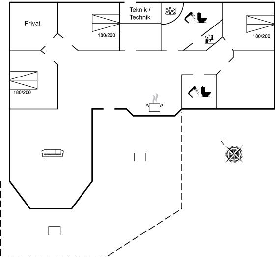 Husets indretning og størrelse gør det velegnet til 2 familier, som ønsker at tilbringe ferien under ét og samme tag.