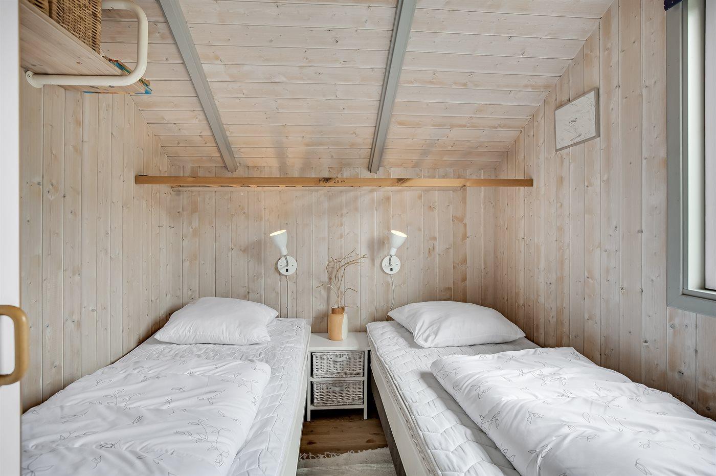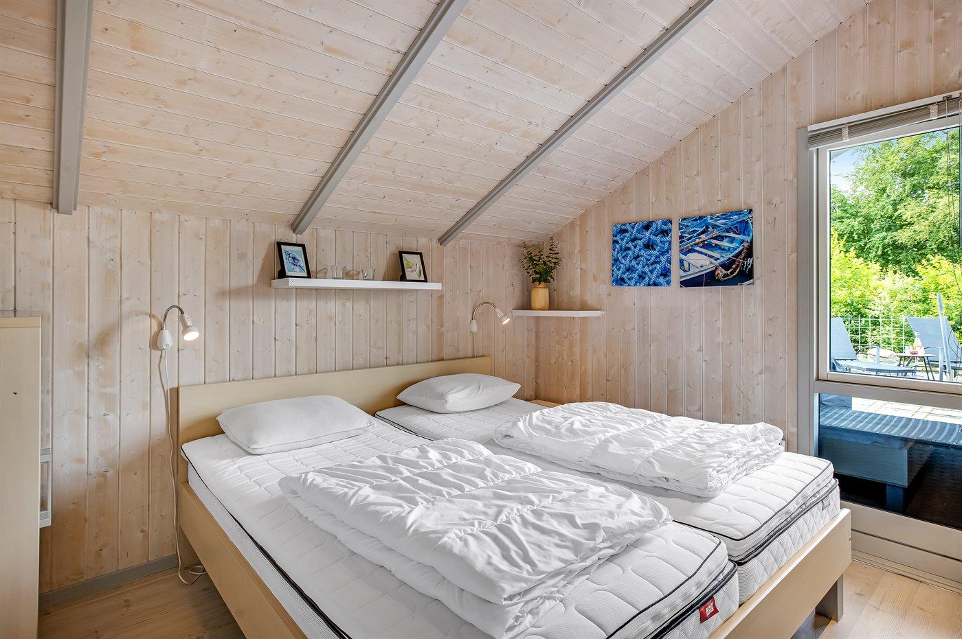 Der er i alt 2 soveværelser. Sovepladserne fordeler sig på: 2 sovepladser i dobbeltseng. 2 sovepladser i enkeltsenge.