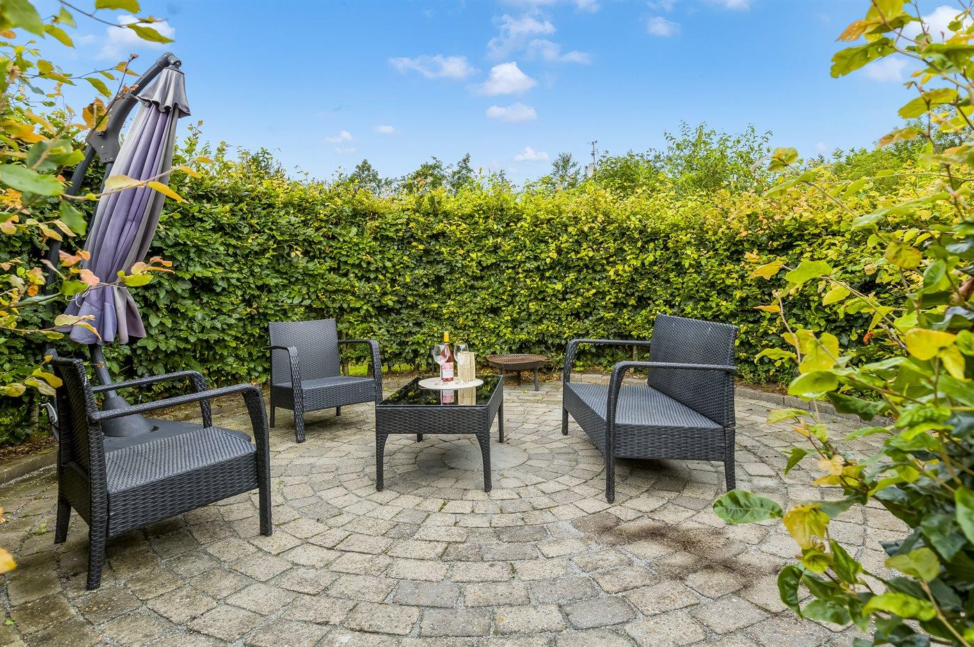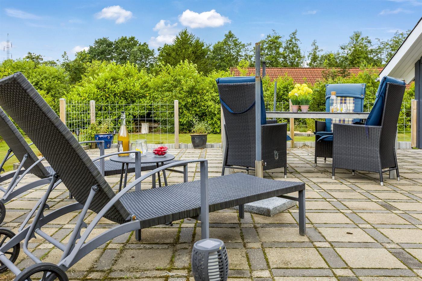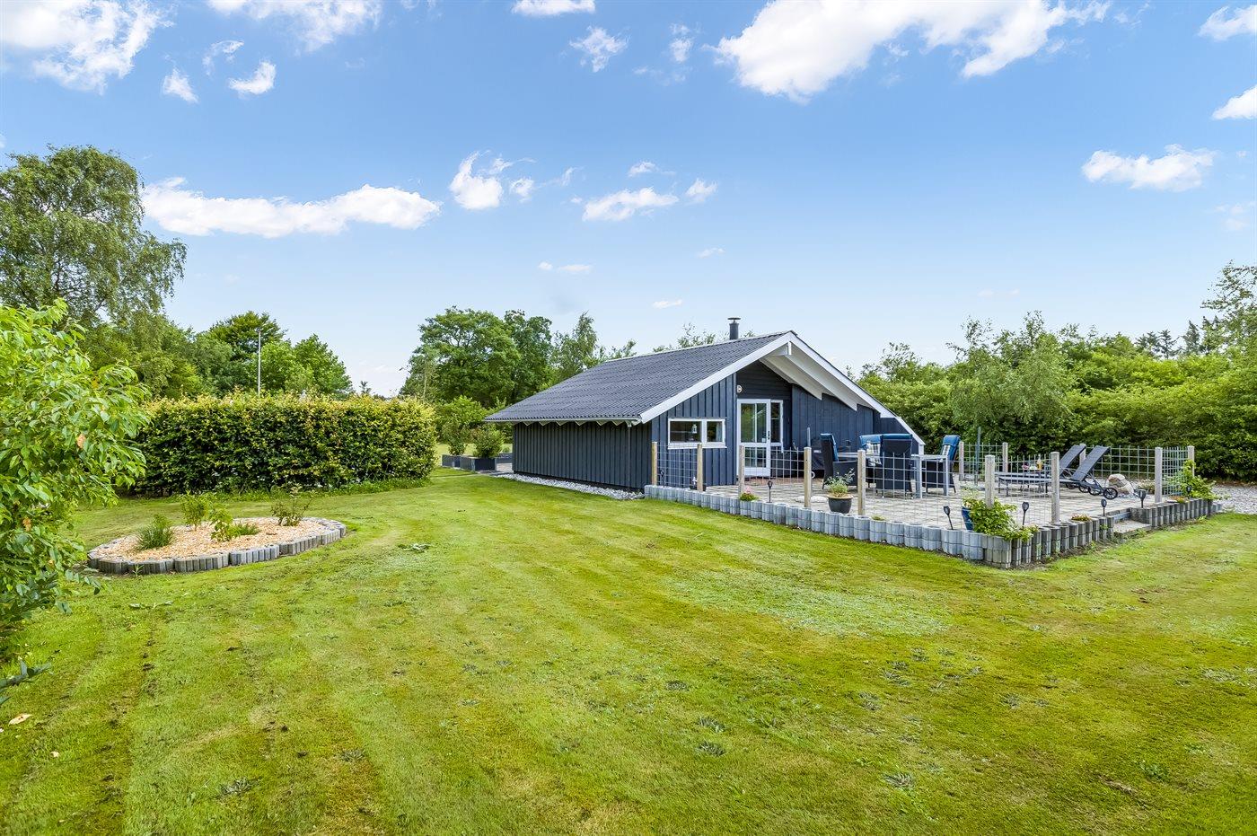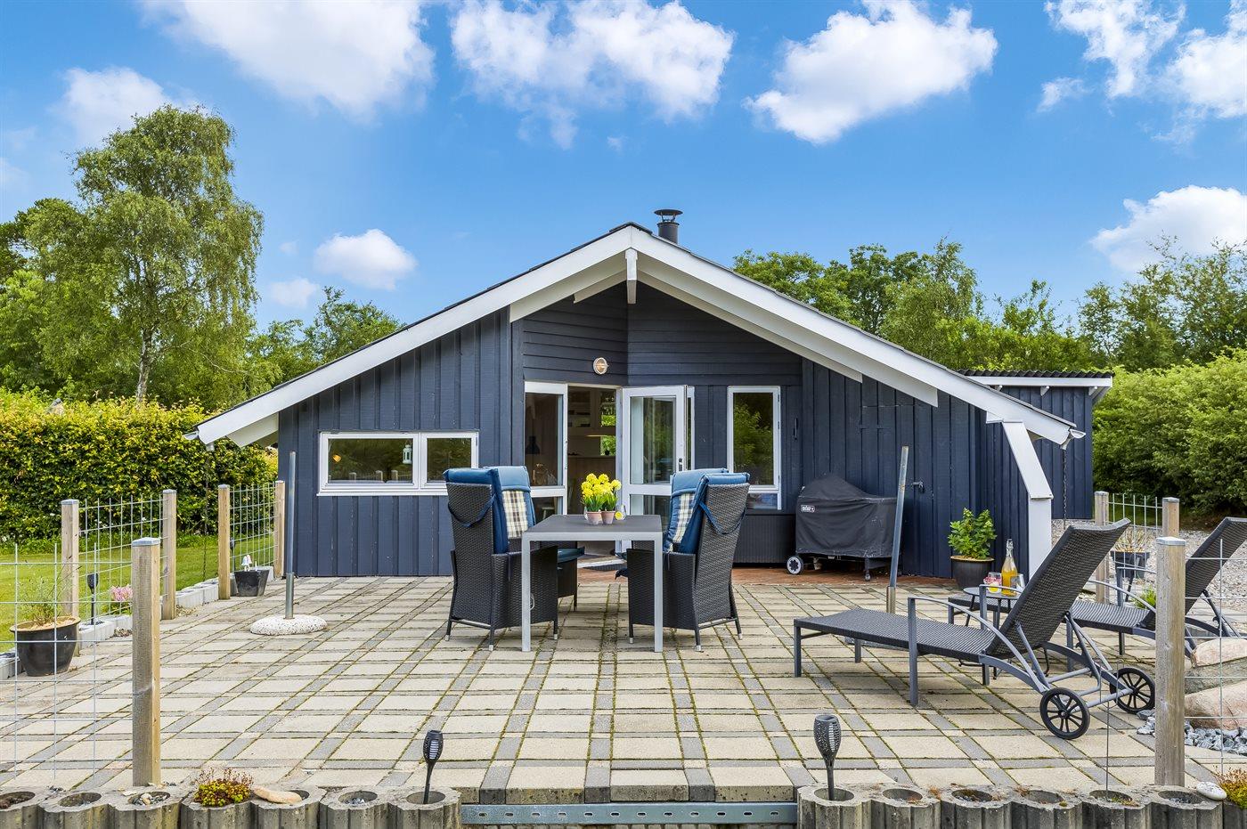 Hyggeligt sommerhus med bålsted og have i naturen