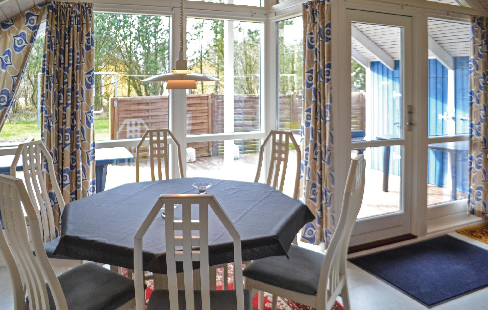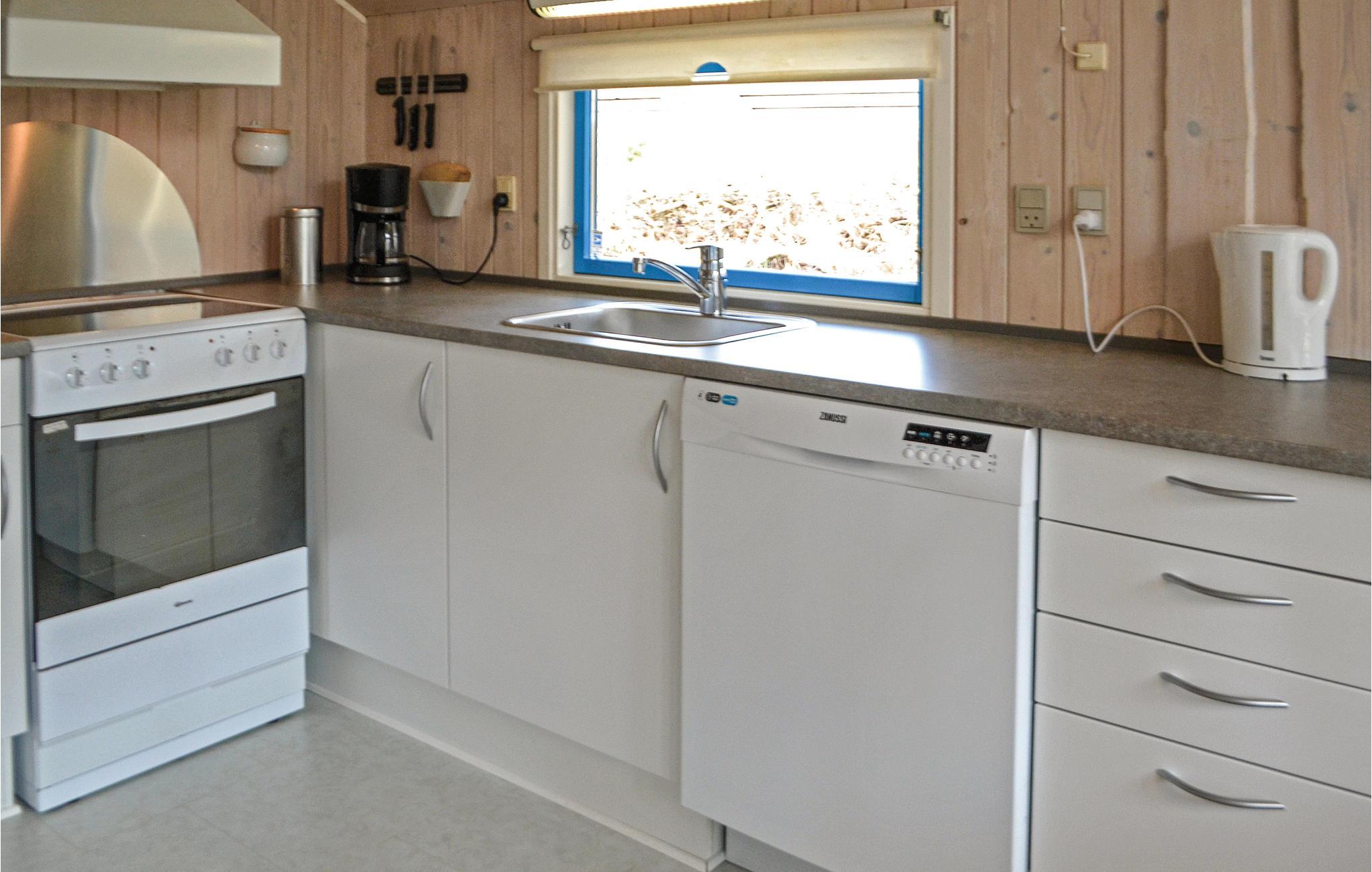 Huset fremtræder hyggeligt, og fra husets køkken-alrum er der udgang til den delvist overdækkede terrasse. Området byder også på flere aktiviteter og attraktioner, hvor de yngste familiemedlemmer nok skal få brændt noget krudt af: hoppeborge, naturlegepladser og forskellige forlystelser venter kun på at prøvet af. Det perfekte udgangspunkt for jeres ferie i Vestjylland.