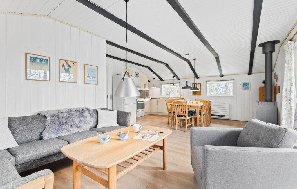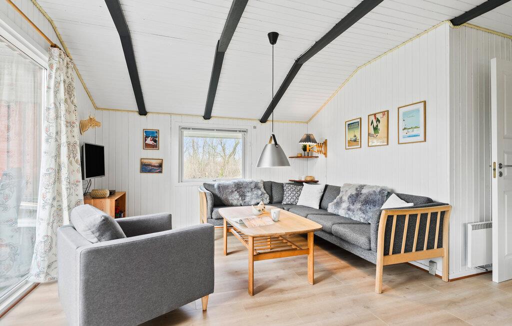 Hyggeligt feriehus i Jegum Ferieland med brændeovn, carport og stor terrasse i naturskønne omgivelser.