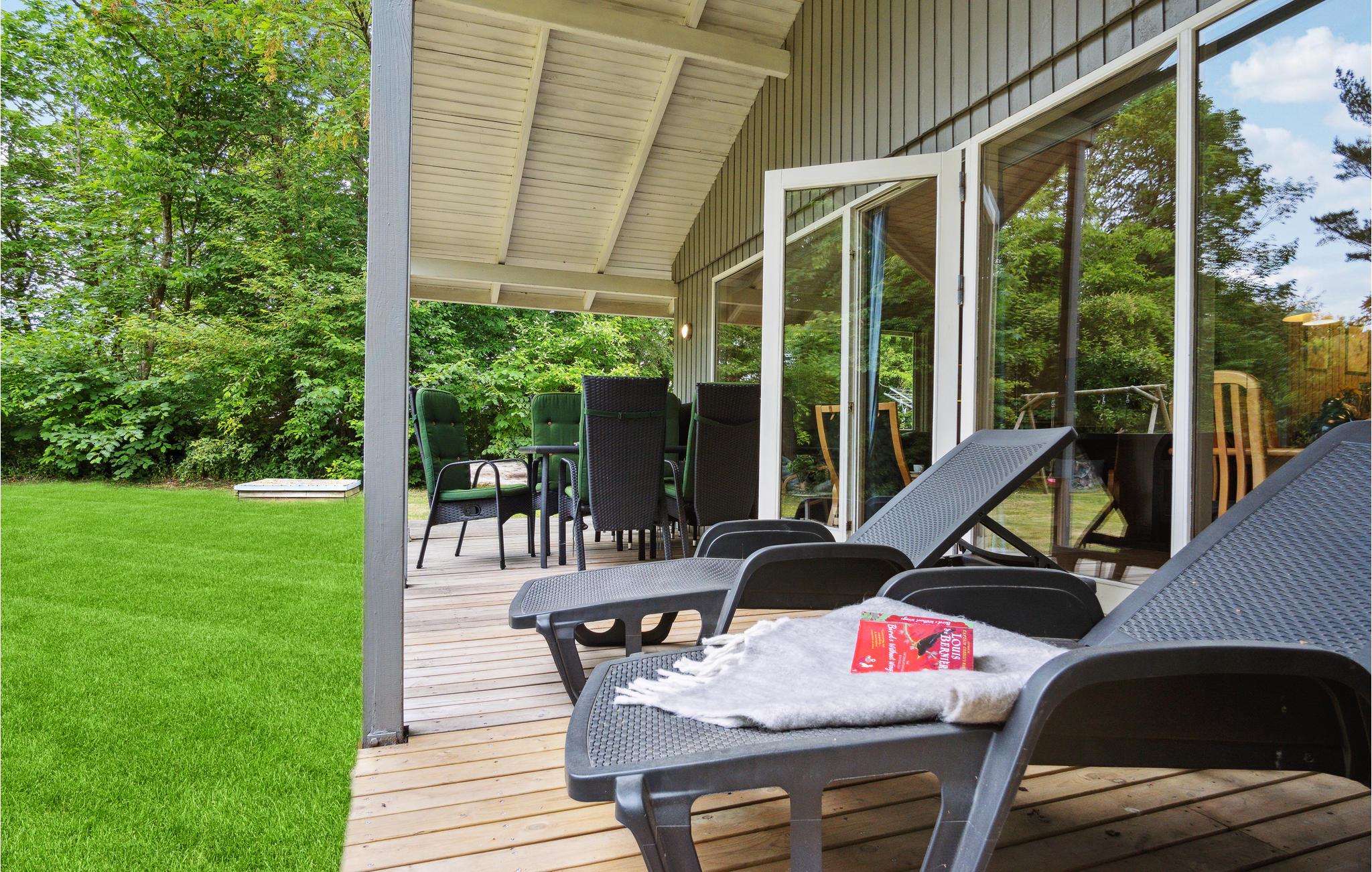 Hyggeligt sommerhus i Jegum Ferieland med sauna, overdækket terrasse og nær aktivitetscenter for familiens fornøjelse.