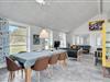 Feriehuset er praktisk indrettet med et større køkken/alrum med klinkegulv og gulvvarme samt udgang til en stor terrasse med et overdækket grillområde. Huset er opført i gode kvalitetsmaterialer og opvarmes med jordvarme. Der er et aktivitetsrum på 40 m2, med it arbejdsplads, internet, sofa, airhockey, ekstra TV samt bordfodboldbord, så der er mulighed for både underholdning og hjemmearbejde under jeres ophold. På grunden er der shelter, bålfad, legeborg med rutchebane, udendørs bordtennis og trampolin.