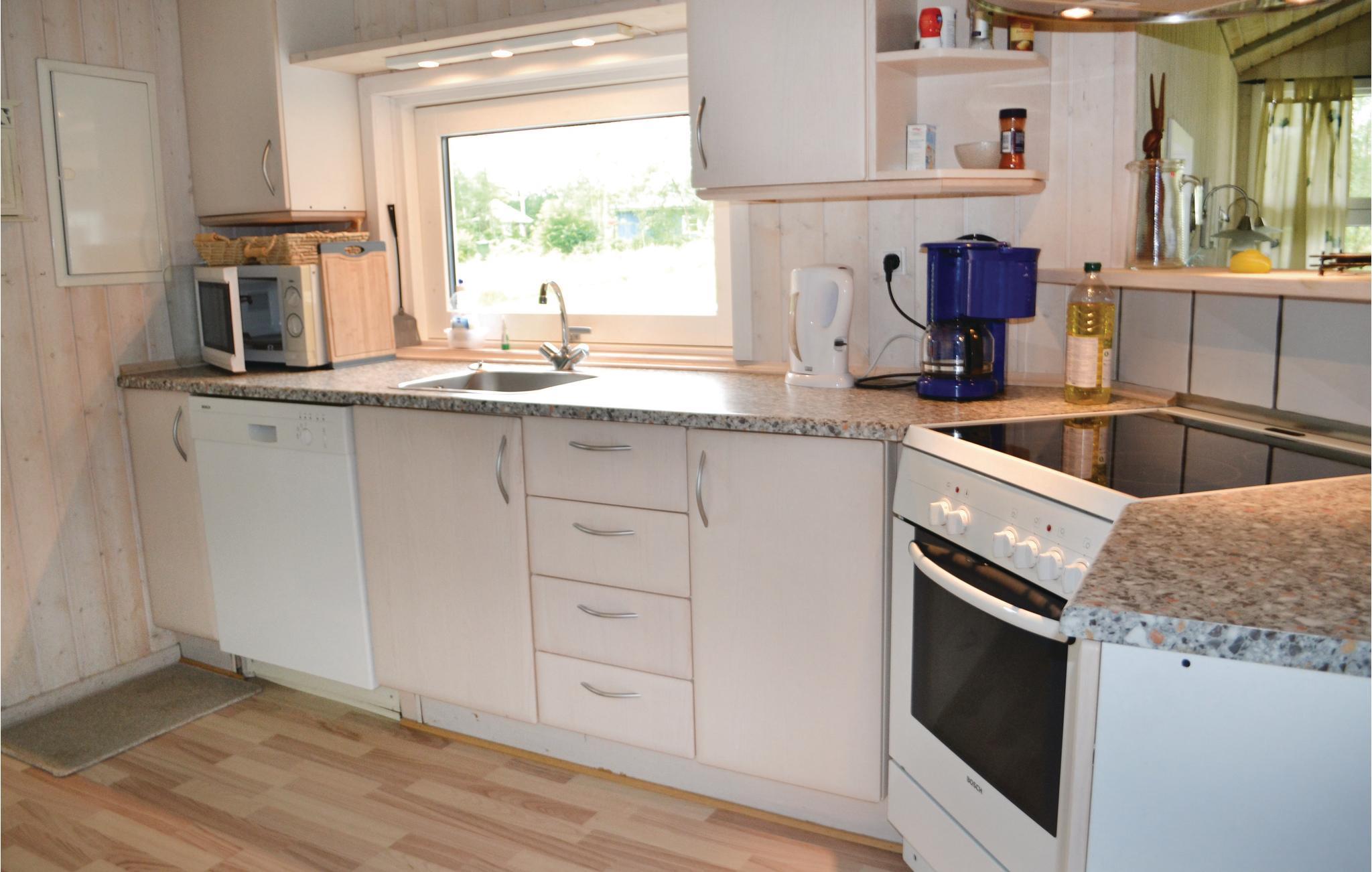 På en delvis lukket og meget lidt befærdet grusvej ligger dette nydelige feriehus. Huset har en god planløsning, som gør indretningen meget funktionel. Det store køkken/alrum med brændeovn vil være jeres naturlige samlingspunkt efter en skøn dag ude i naturen. Den store terrasse er omgivet af et lavt hegn på tre af husets sider.