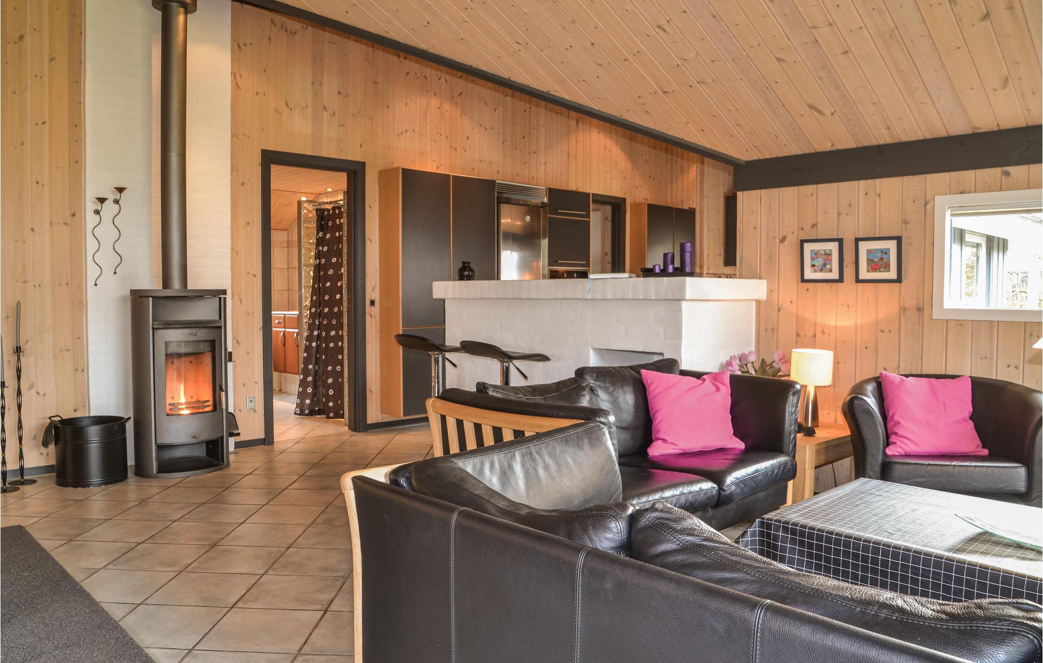 Et lækkert sommerhus der ligger på en stor, ugenert naturgrund med rigtig gode aktivitetsmuligheder og i det meget børnevenlige Jegum Ferieland. I husets store og rummelige badeværelse med gulvvarme er der spabad og adgang til saunaen. Fra det hyggelige og moderne indrettede køkken/alrum med brændeovn er der adgang til flere gode terrasser med både læ og sol. På grunden findes en carport, så jeres bil kan stå i skygge og tørvejr på alle årstider. Ved områdets aktivitetscenter er der indkøbsmuligheder, restaurant, fælles grillhytter, hoppepuder, minigolf og et lille mini-zoo med klappedyr. Stor fælles legeplads med alle muligheder for udfoldelse, store som små. I det nærliggende område er der både cykel- og hesteudlejning samt gode fiskemuligheder. Et godt valg til en uforglemmelig familieferie.