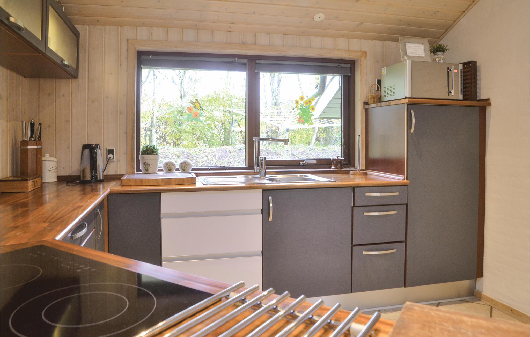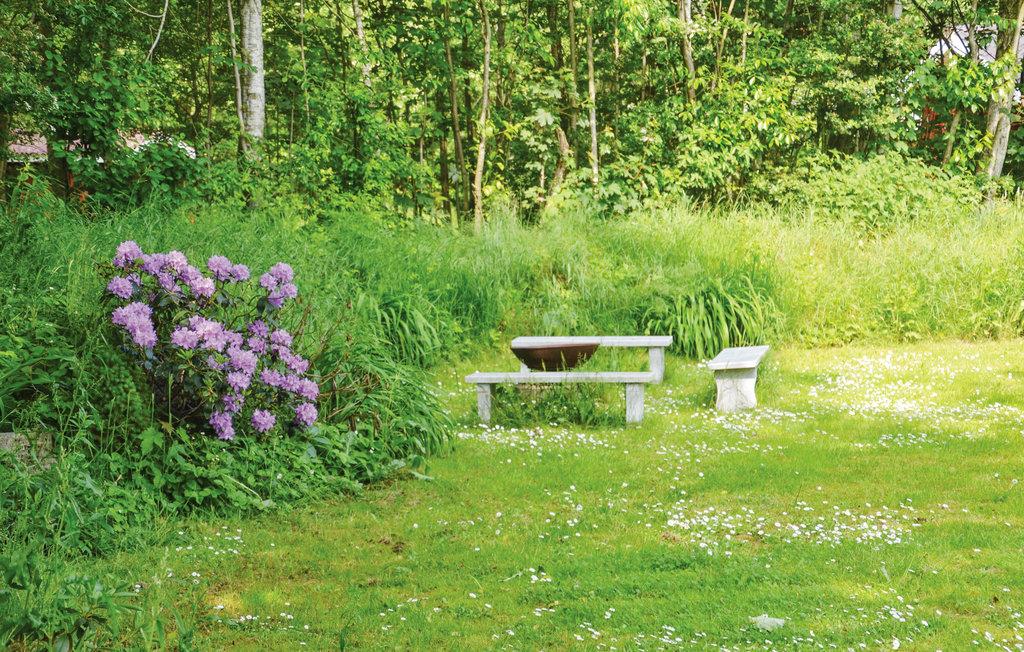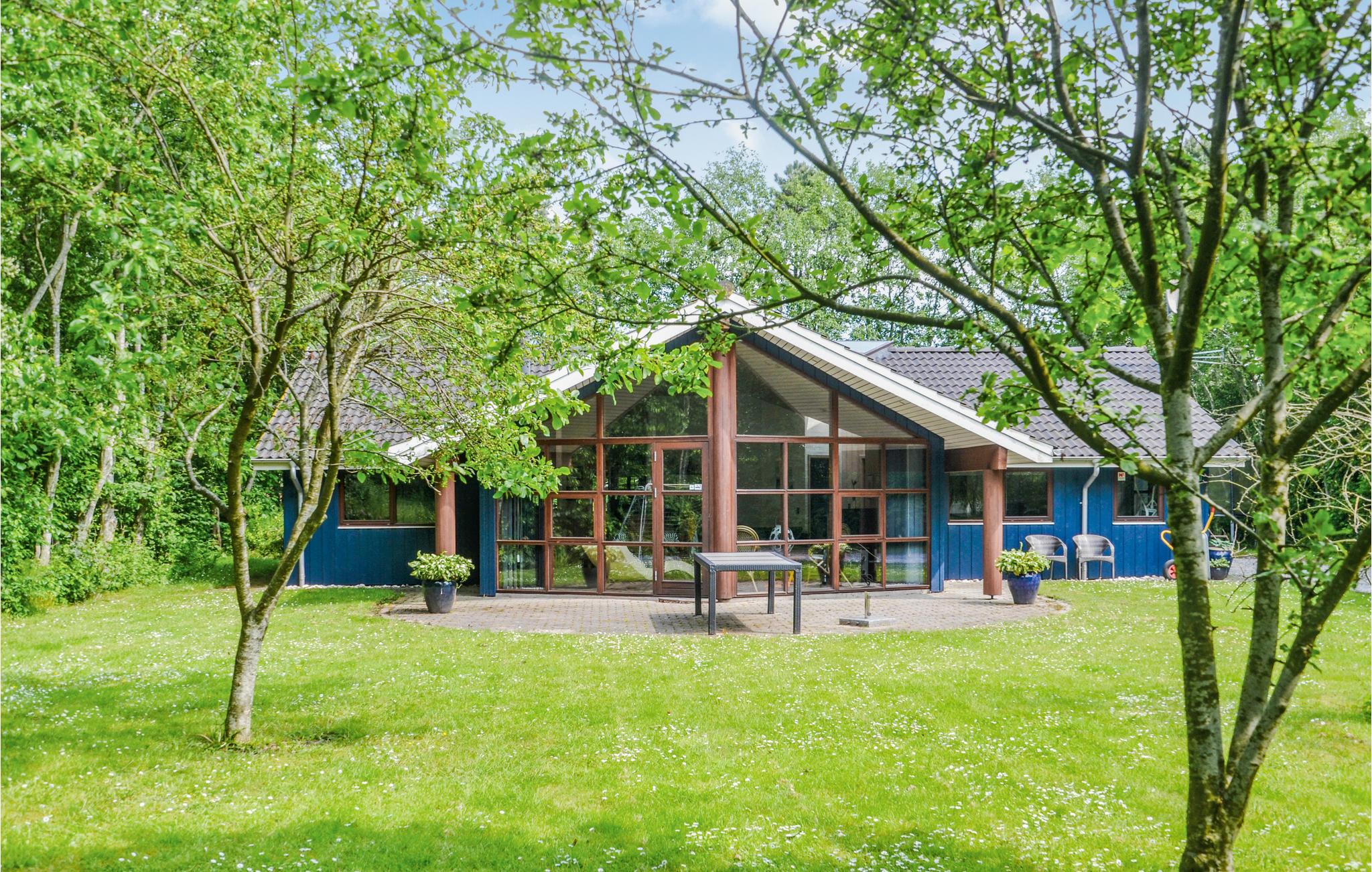 Arkitekttegnet feriehus med sauna, spabad og trampolin på stor naturgrund nær Jegum Ferieland.