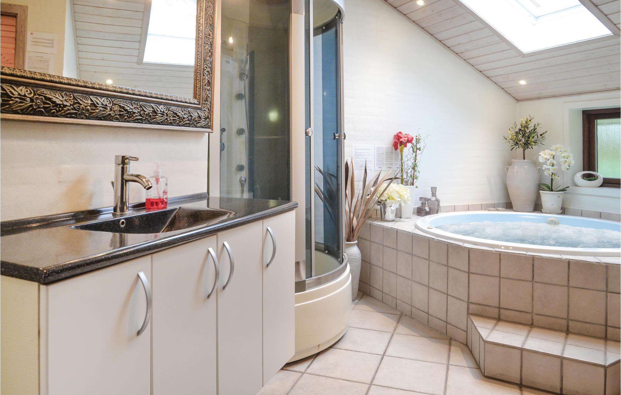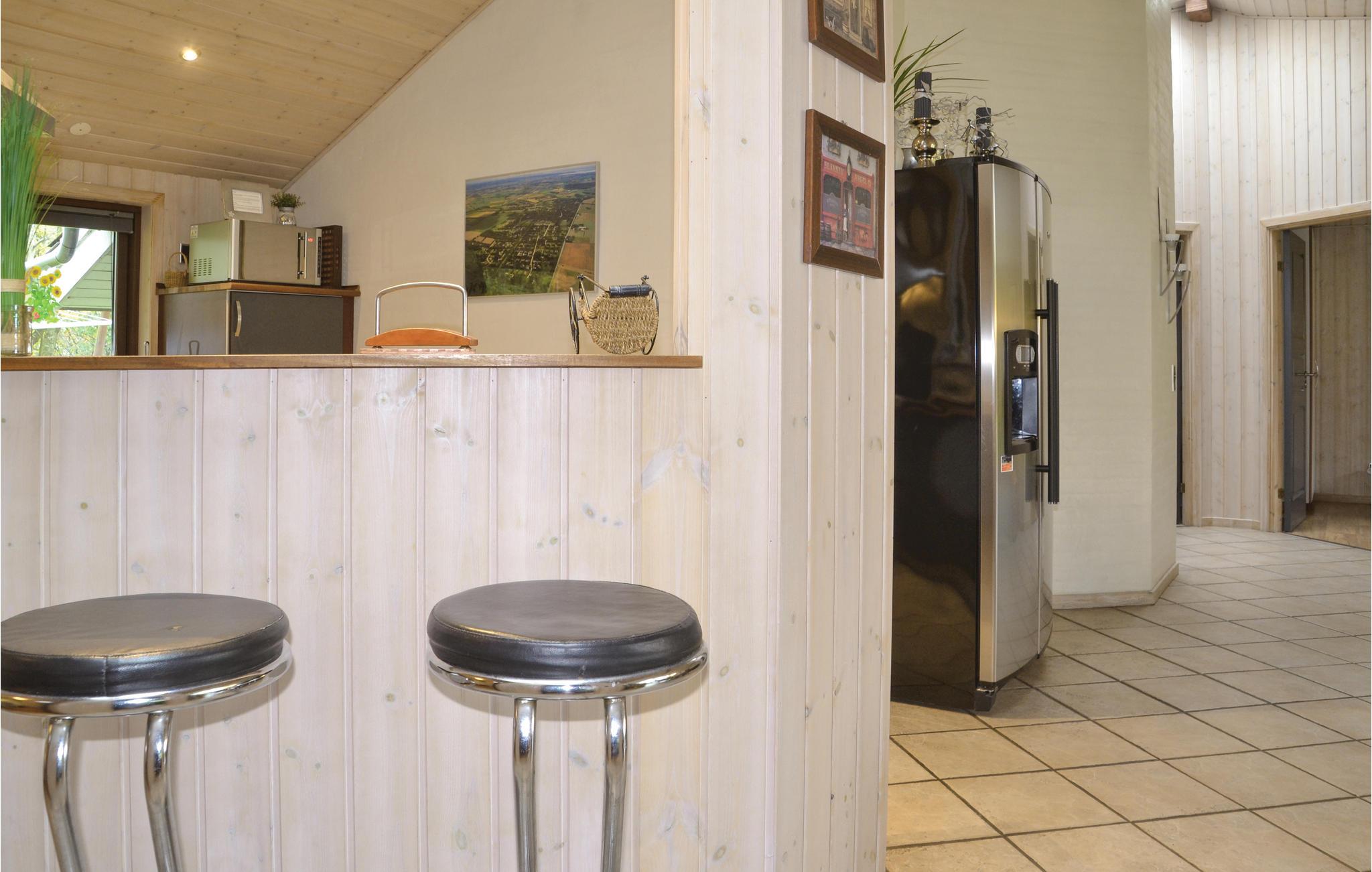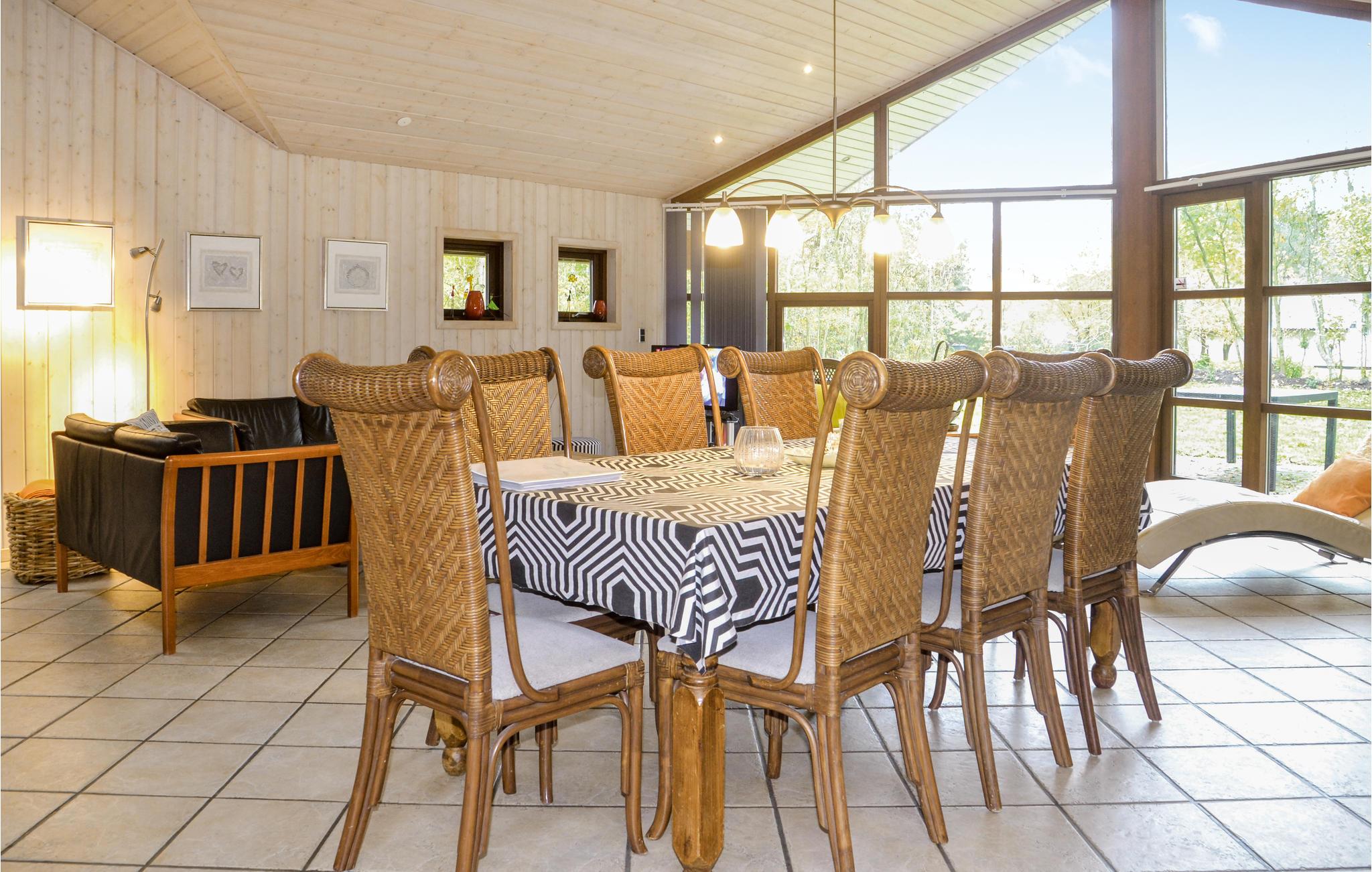 Rigtig flot, arkitekttegnet feriehus, bygget i kvalitetsmaterialer med bl.a. mahognivinduer. Huset ligger på en stor lukket naturgrund, næsten for enden af en lukket vej og kun 500 m fra aktivitetscenteret i Jegum Ferieland. Huset er indrettet med stort køkken/alrum, loft til kip samt et stort vinduesparti og tagvindue, som giver et dejligt lysindfald. Fra køkken/alrummet med bl.a. amerikansk køleskab og brændeovn, er der udgang til en delvis overdækket, sydvendt terrasse. Her findes også en overdækket morgenterrasse med spotlys. På den hyggelige hems er der lavet en afdeling med tv og DVD. I husets store badeværelse findes både spabad og sauna. Husk cyklerne, da der er et stort stisystem i området samt cykelsti helt til Blåvands bølger. Om sommeren er der trampolin i haven.