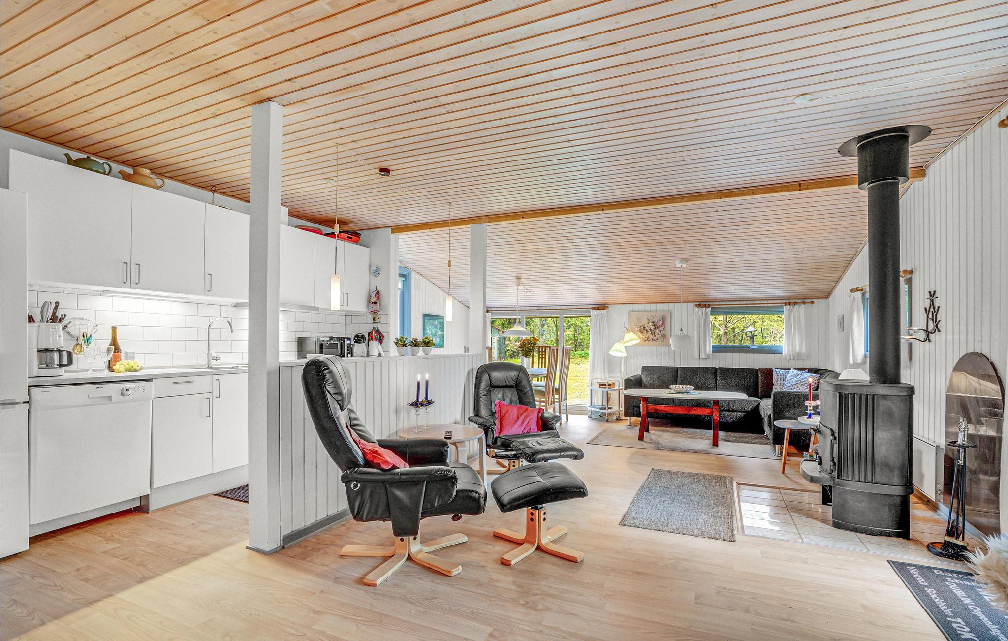 Huset har en god, rummelig opvarmet havestue, hvor morgenkaffen kan nydes, mens solen står op mod øst. Fra feriehusets køkken/alrum med brændeovn, er der adgang til husets soveværelser samt badeværelse. Ved feriehuset findes en dejlig, solrig terrasse, hvor I kan sidde og hyggesnakke over en kop kaffe, og grille lækre feriemåltider om aftenen. Der er Dolce Gusto kaffemaskine i huset.
