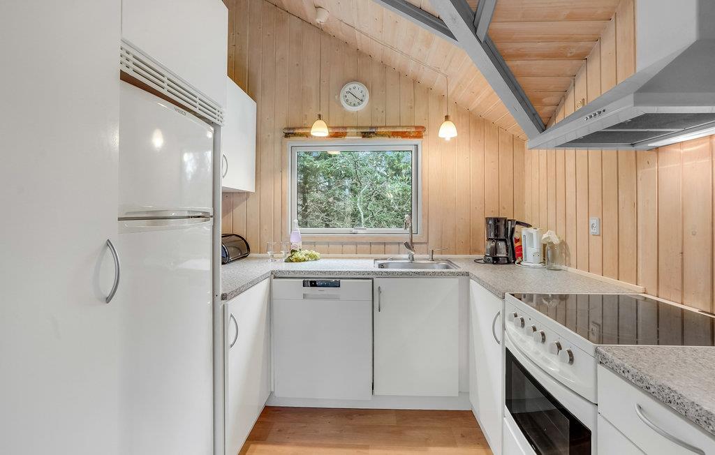 For enden af en lukket vej i Jegum Ferieland ligger dette feriehus, der bl.a. indeholder en sauna samt et hyggeligt køkken/alrum med brændeovn.