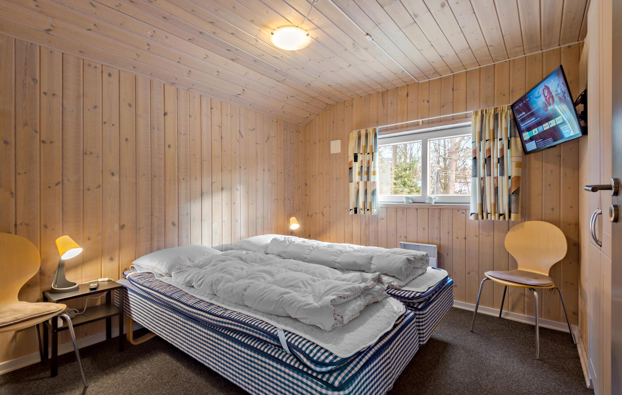 Der er lagt op til et behageligt afbræk fra hverdagen, når turen går til Jegum Ferieland med familien. I dette hyggelige træhus venter jer klassisk feriestemning i absolut indbydende omgivelser. Husets hjerte er den store og åbne stue, der prydes af en særegen og særdeles flot indretning. I kan se frem til mange hyggelige stunder og fremtrylle familiens livretter i det veludstyrede køkken, mens andre spiller brætspil eller læser en god bog i sofaen. Skal I gøre det ekstra godt for jer selv, kan I glide ned i boblerne i spabadet og lade jer varme helt igennem i saunaen.