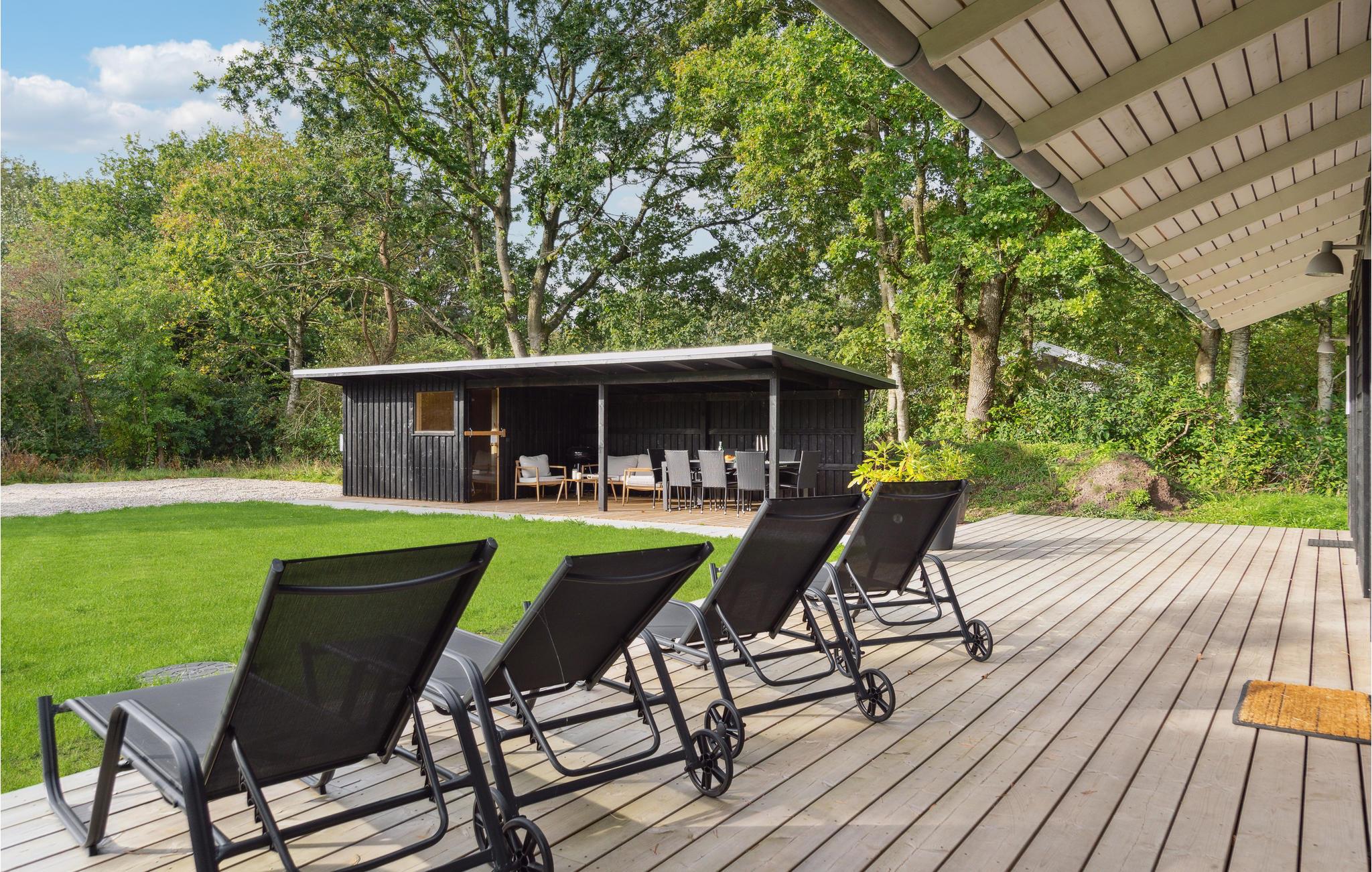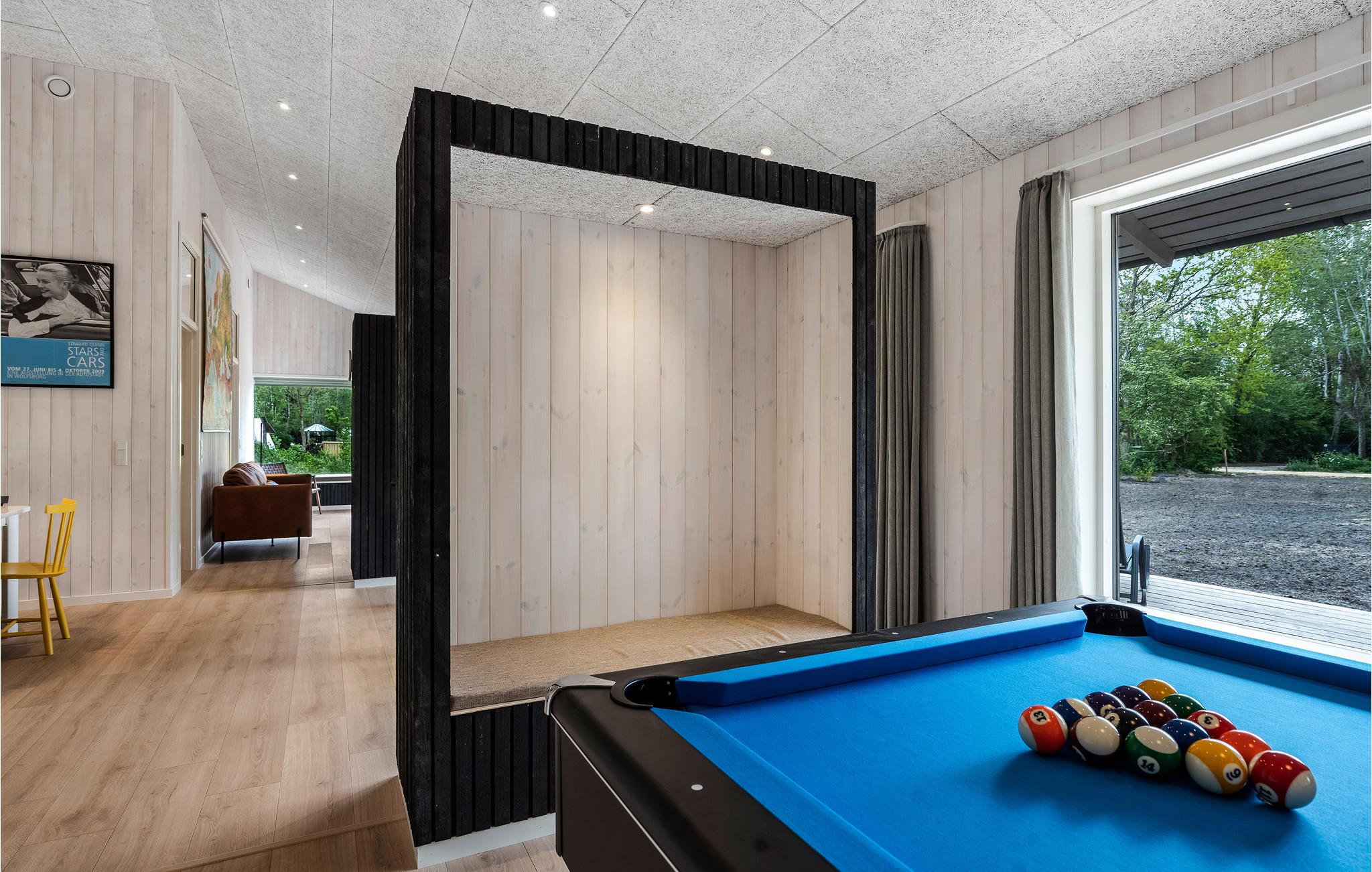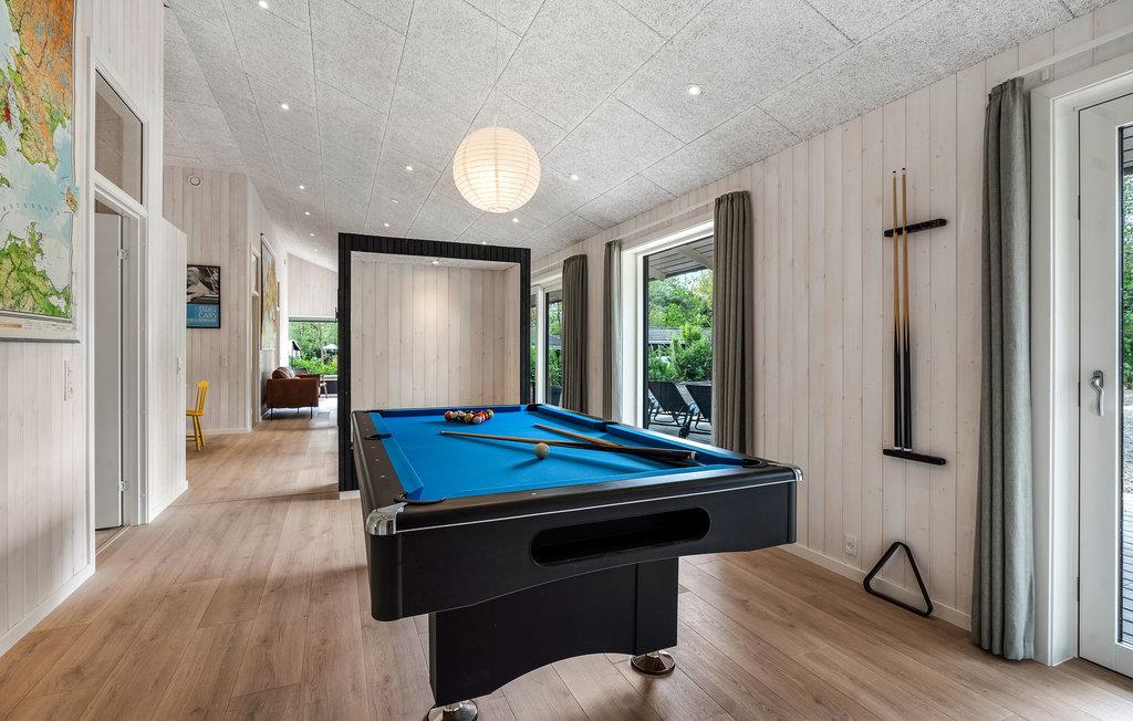 Moderne feriehus i Jegum Ferieland med wellness, poolbord og udendørs sauna til afslapning.