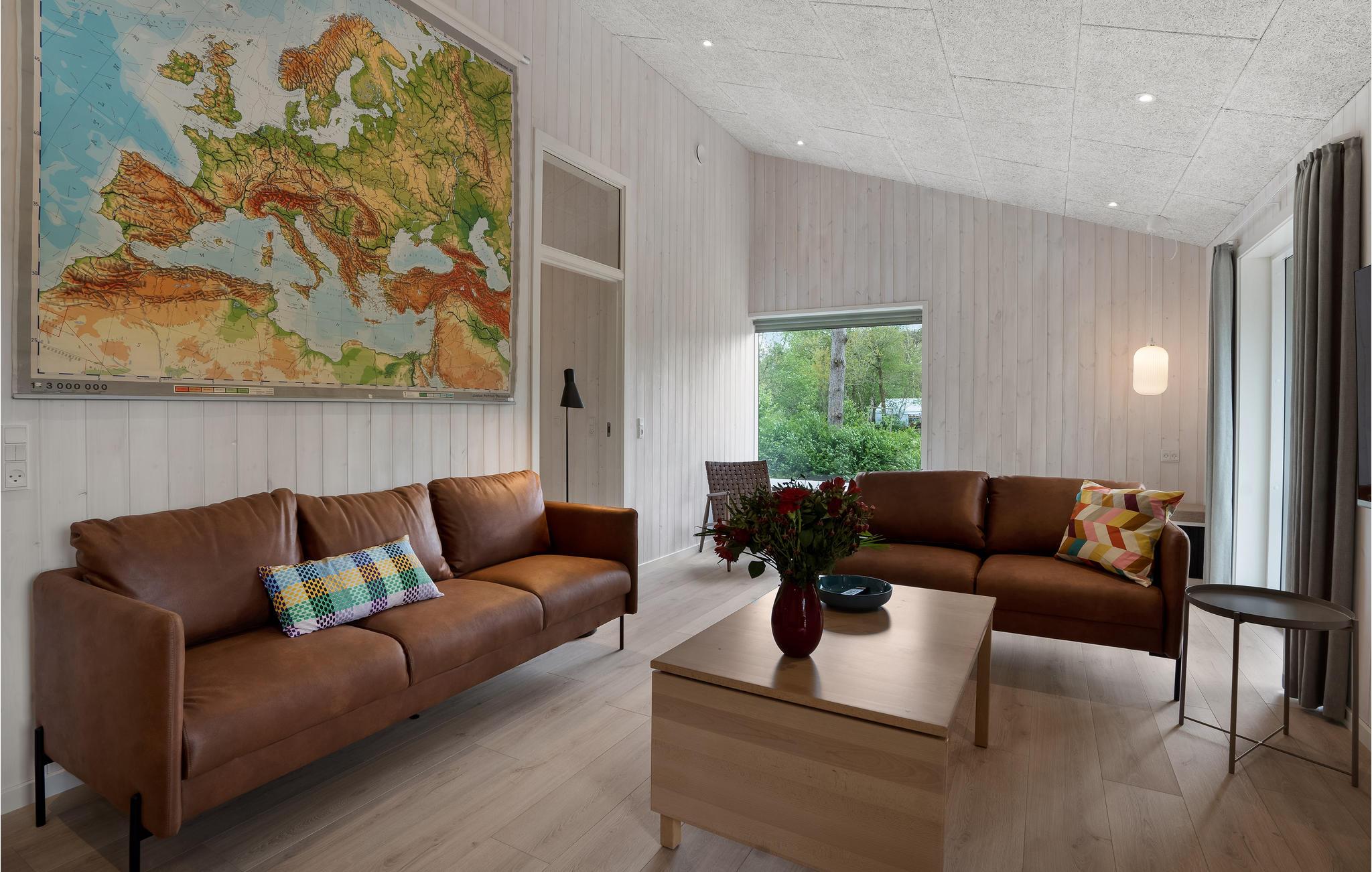 Alt står klar her i det lyse hus, til at I kan tilbringe en hyggelig og afslappende ferie med hele familien. Den moderne og hyggelige indretning gør det til et skønt sted, hvor I kan slappe af og lægge den hektiske hverdag bag jer. Nyd måltider sammen og afslappede aftener i opholdsstuen, hvor I kan sidde i sofaen, se en film sammen eller udfordre hinanden til en familieturnering ved poolbordet med en smuk udsigt til omgivelserne. Tilbered lækre retter på grillen til hele familien på terrassen og benyt lejligheden til at tilbringe hyggelige timer sammen udendørs. Den udendørs sauna tilbyder hyggelig varme og beroligende afslapning.