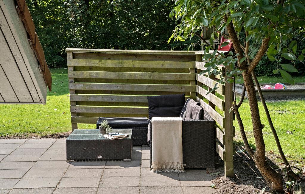Fra stuen er der udgang til en sydvendt terrasse, hvor I kan sætte jer til rette og nyde solen på de varme dage. Der er god plads til, at børnene kan boltre sig i den store have, hvor der både er gynger, rutsjebane og sandkasse. Hele familien kan også tage et spil fodbold og se, om I rammer et af de to opsatte mål. Der er dejlig ugenert i haven, som er afskærmet af store træer.
