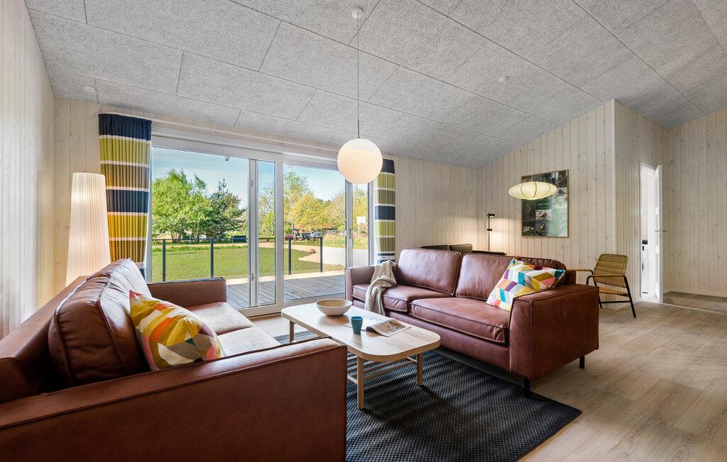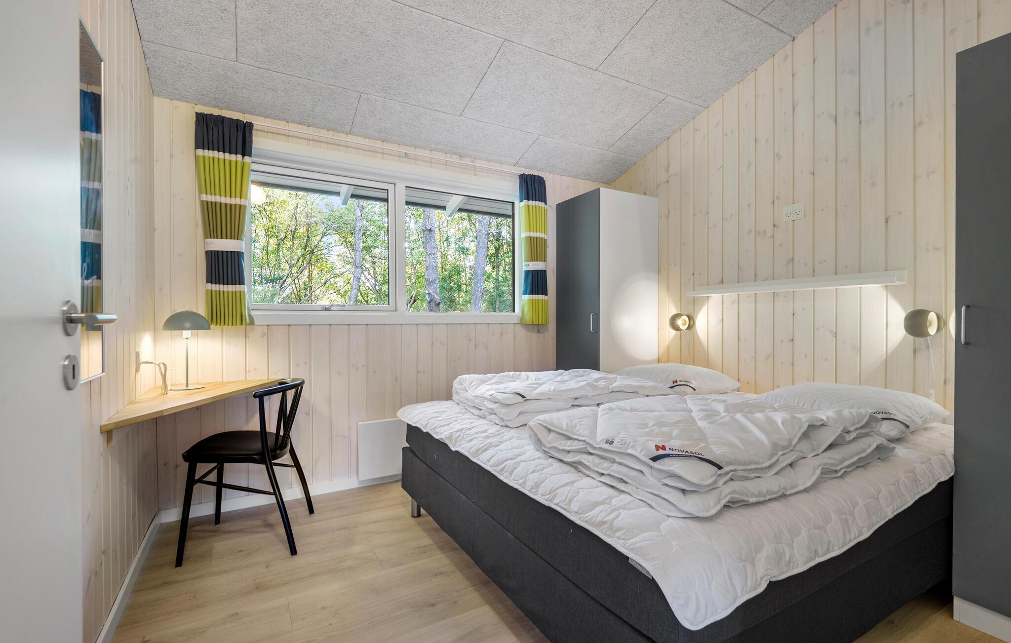 Forkæl jer selv med afslappende dage i jeres hyggelige feriehus, hvor en smuk kombination af fred, komfort og nærhed til naturen venter jer. Indenfor vil I blive mødt af en stilfuld atmosfære, der giver huset en behagelig atmosfære. Slap af i den rummelige opholdsstue, hvis store vinduesparti ikke kun lukker masser af lys ind, men også åbner op for udsigten til grønne områder. I det rummelige, åbne køkken har I alle muligheder for at fremtrylle kulinariske lækkerier sammen. Bagefter kan I nyde dem i den tilstødende spisestue, ideel til afslappende aftener med familien. Der er et poolbord og et bordfodboldbord til rådighed til underholdende timer.