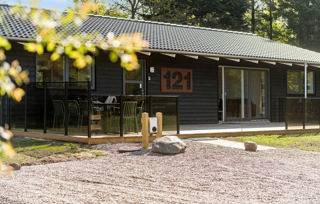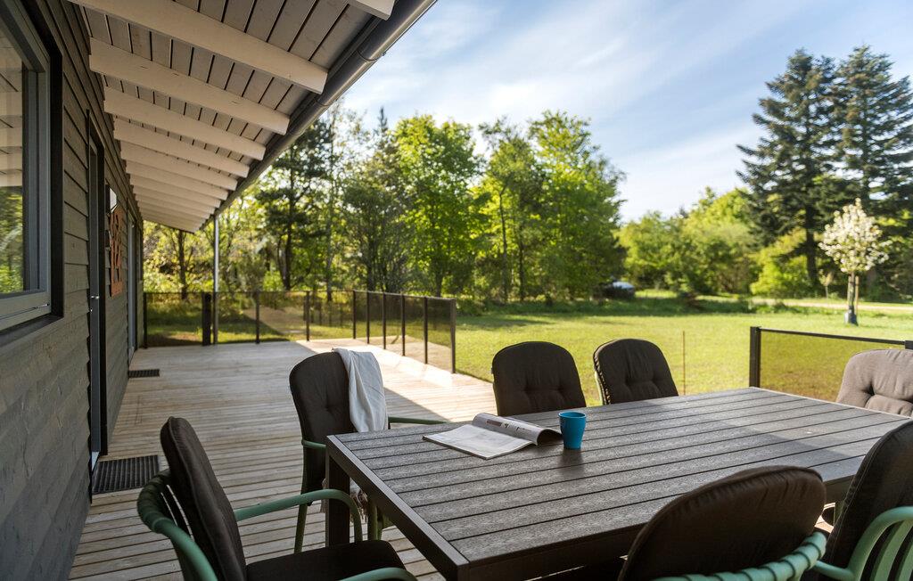 Nyd en fredelig ferie i dette moderne feriehus med aktivitetsrum, stor terrasse og tæt på naturen i Jegum.