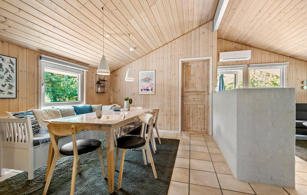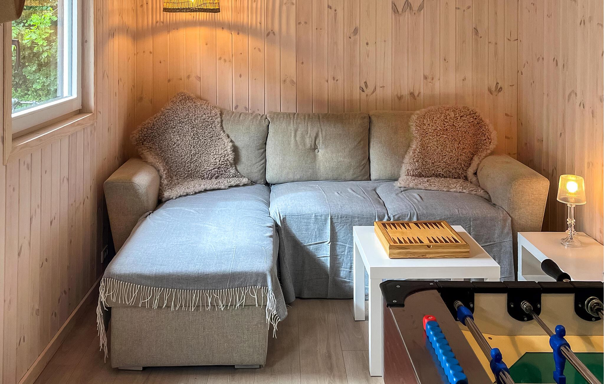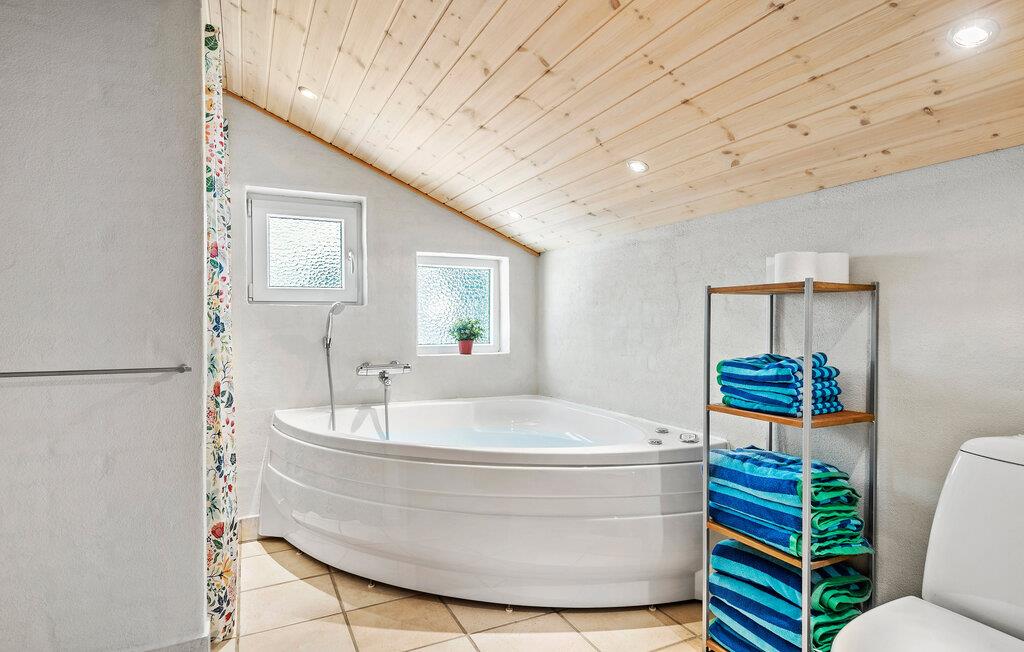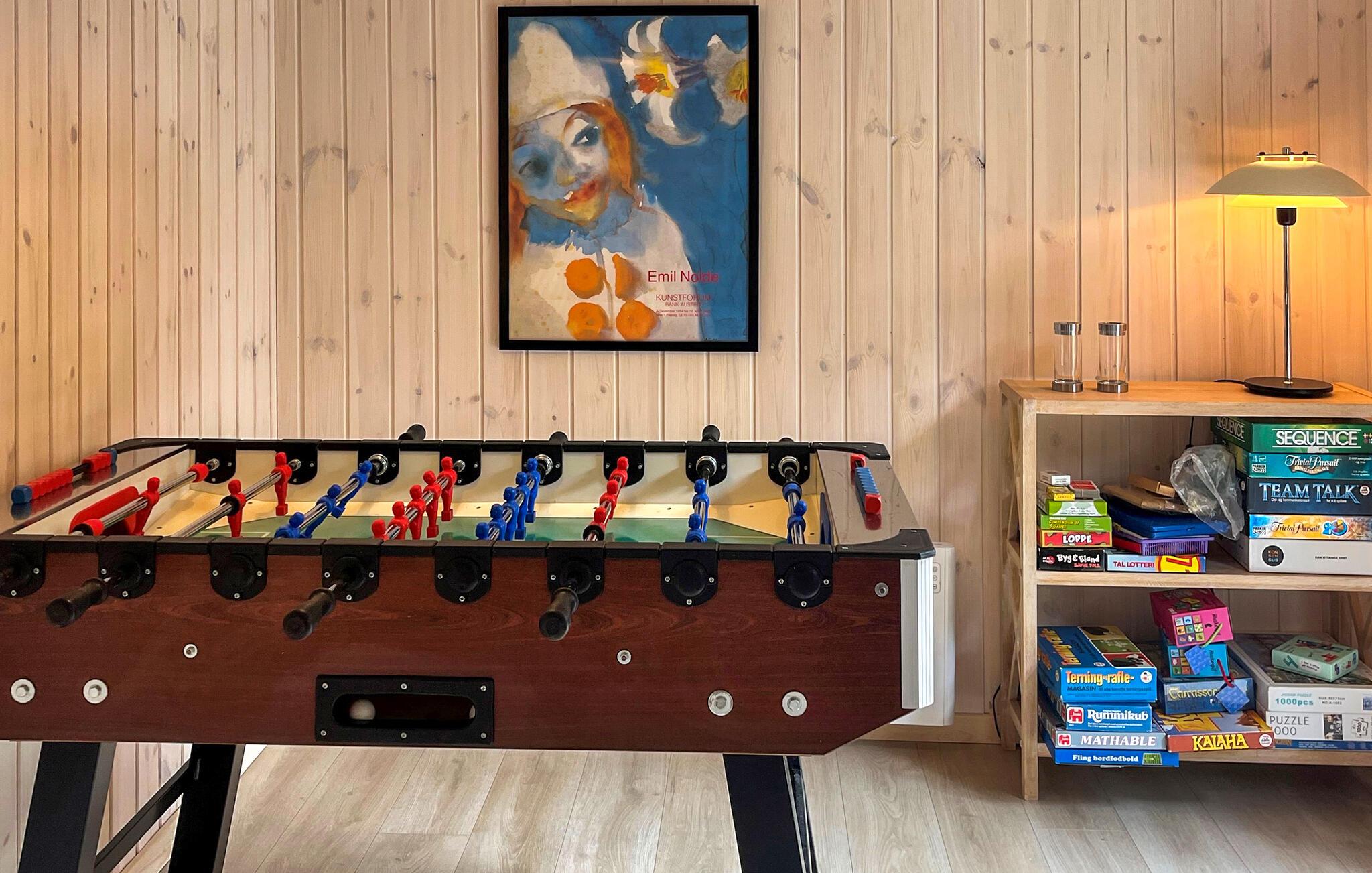 Velkommen til dette lyse og hyggelige feriehus, hvor hele familien vil opleve uforglemmelige dage. Fremstil lækre retter med friske råvarer fra gårdbutikken, og glæd jer til hyggelige måltider ved det indbydende spisebord. Forkæl jer selv med afslappende stunder i saunaen eller spabadet, mens resten af ??gruppen hygger sig ved bordfodboldbordet, og find sammen til hyggelige spilleaftener eller en spændende film i den hyggelige stue.