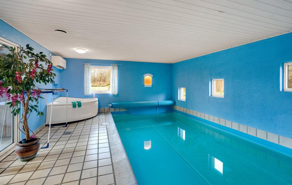 Skønt swimmingpoolhus med sauna og spabad i naturskønne Jegum Ferieland.