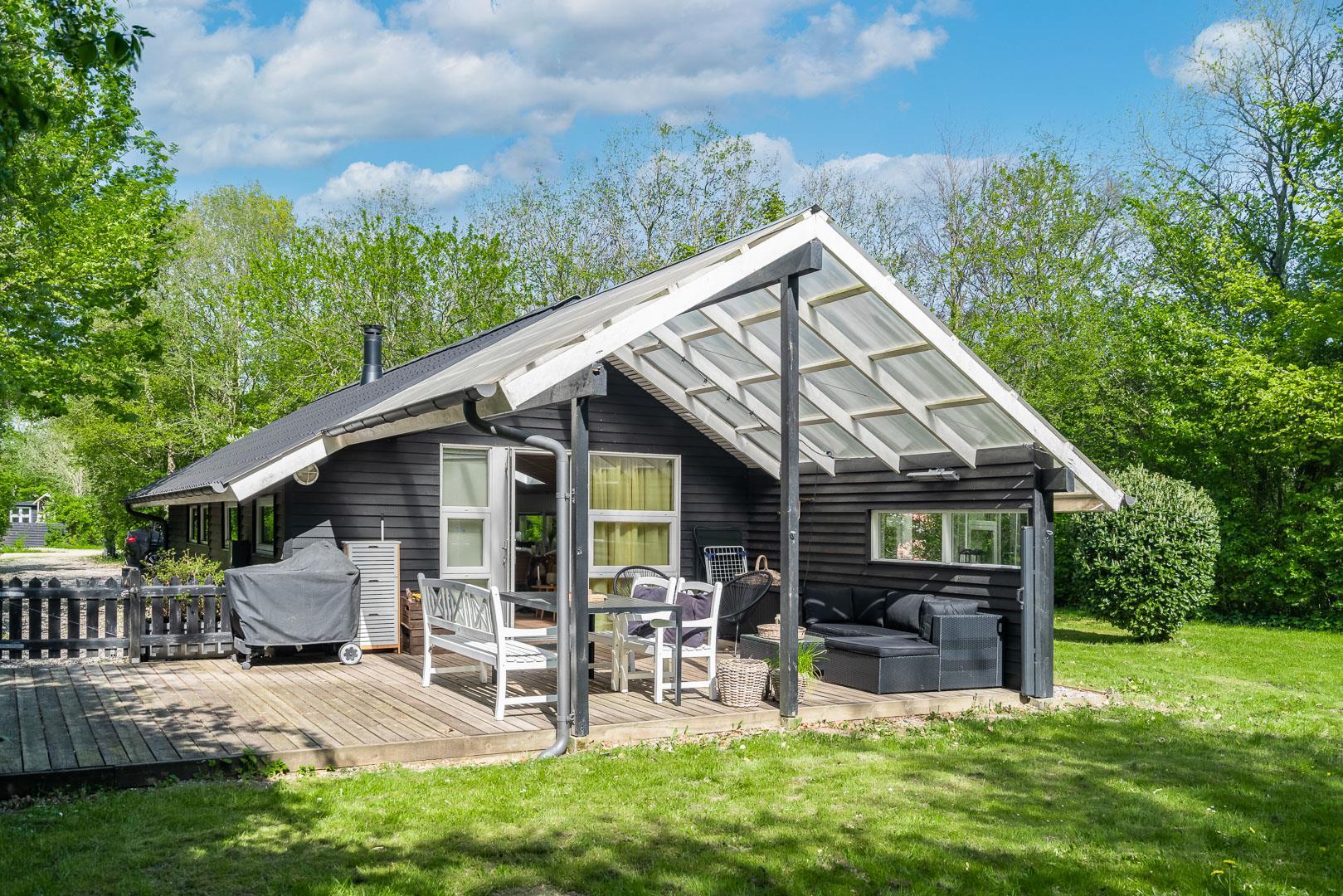 Familievenlig have med overdækket terrasse