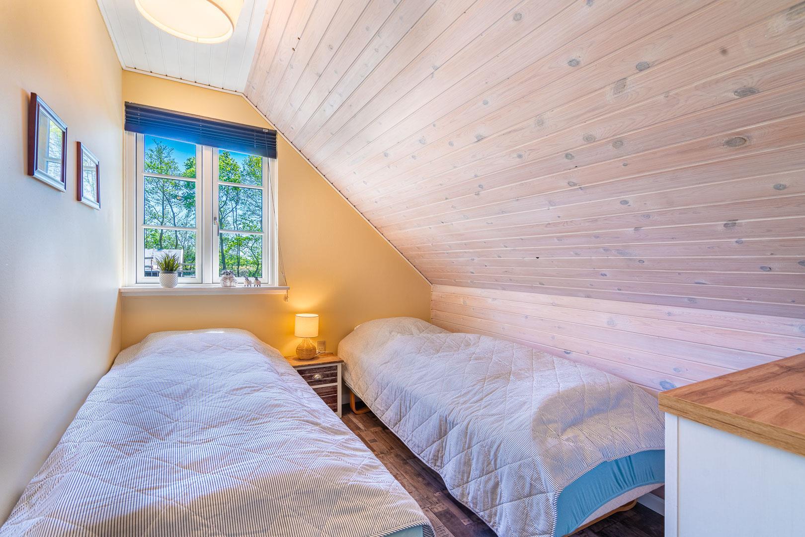 Der er i alt 3 soveværelser: ét med dobbeltseng og to med hver to enkeltsenge – perfekt til børnefamilier eller vennepar.
