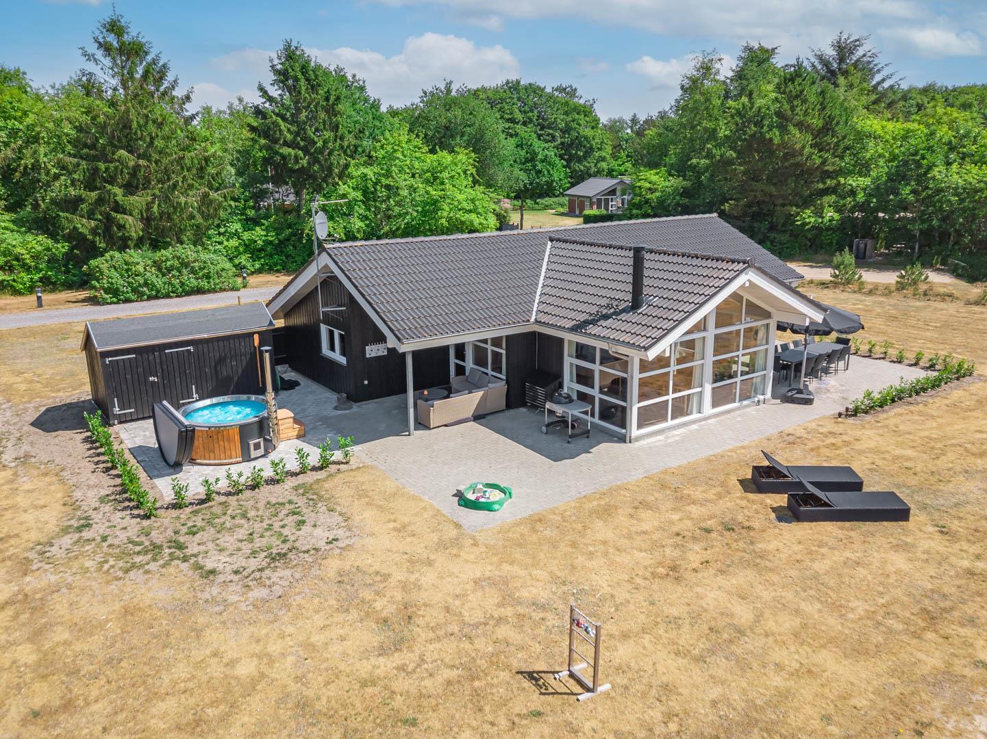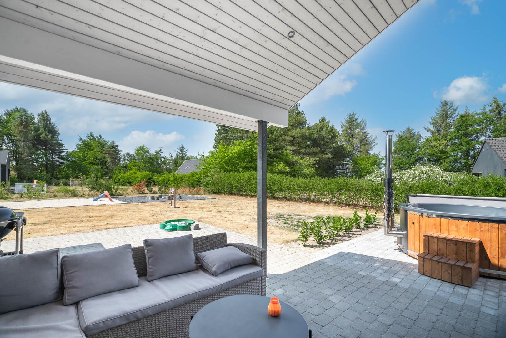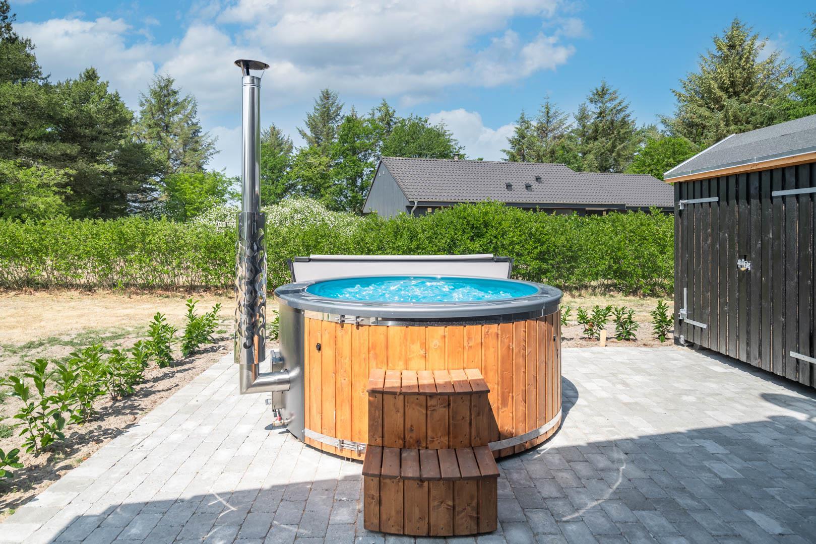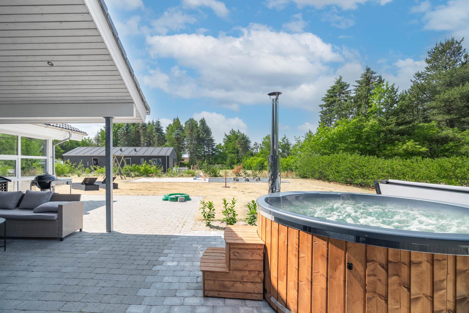 Som prikken over i’et finder I husets udendørs spa. Her kan I læne jer tilbage i det varme vand under åben himmel og nyde stilheden – den perfekte afslutning på en dejlig feriedag.