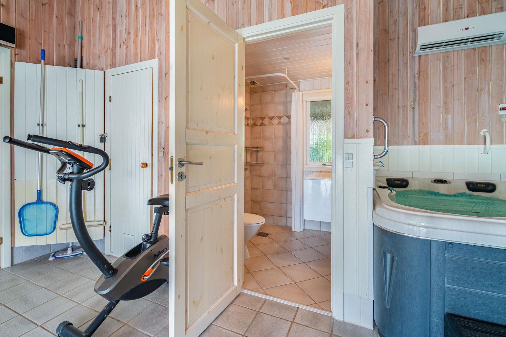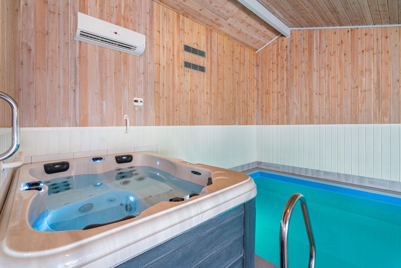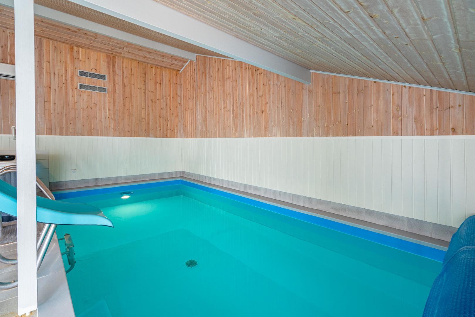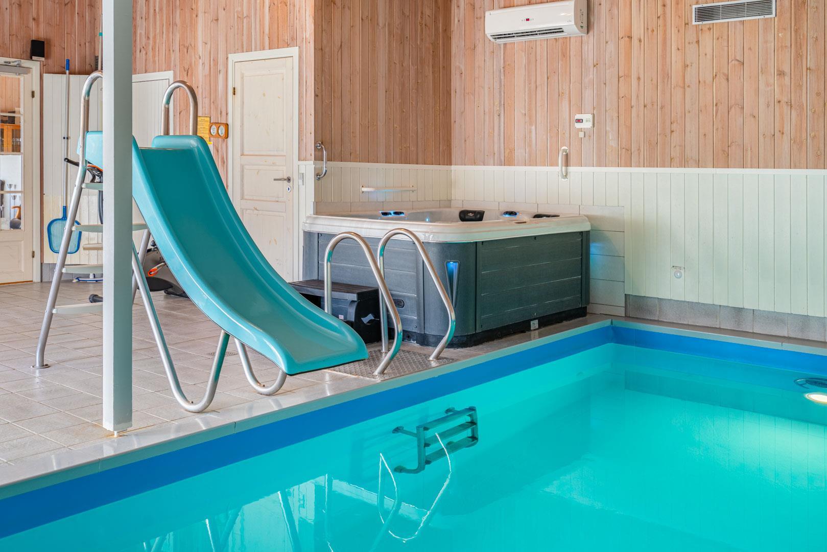 Efter en dag ved stranden kan I slappe af i spaen, tage en tur i saunaen eller svømme i den private pool med modstrømsanlæg og rutsjebane – et hit for både børn og voksne. Vandforbruget er allerede inkluderet i lejen.