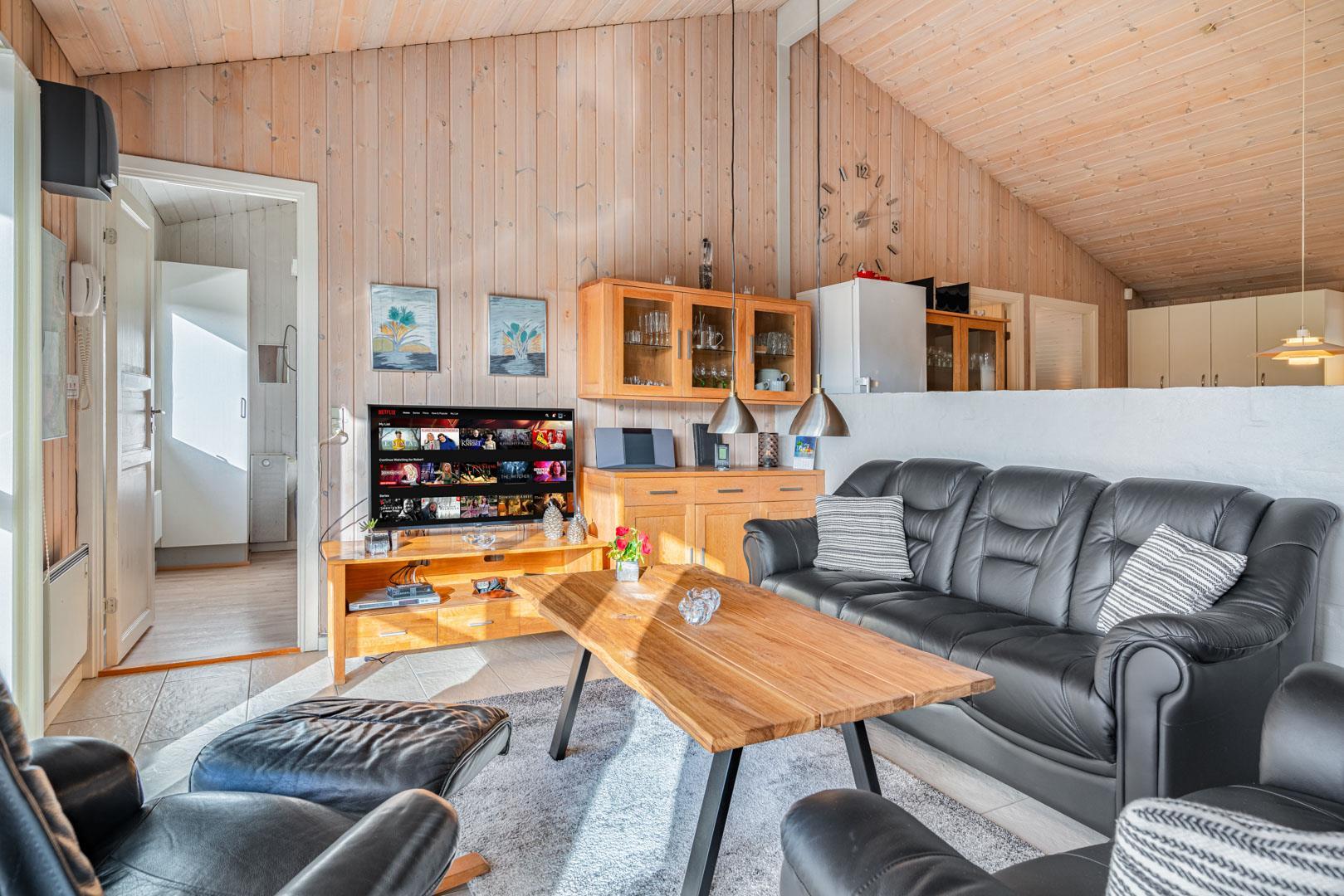 Den lyse og åbne stue med gulvvarme indbyder til afslapning. Tænd op i brændeovnen, se en film via Chromecast, og nyd den hyggelige atmosfære.