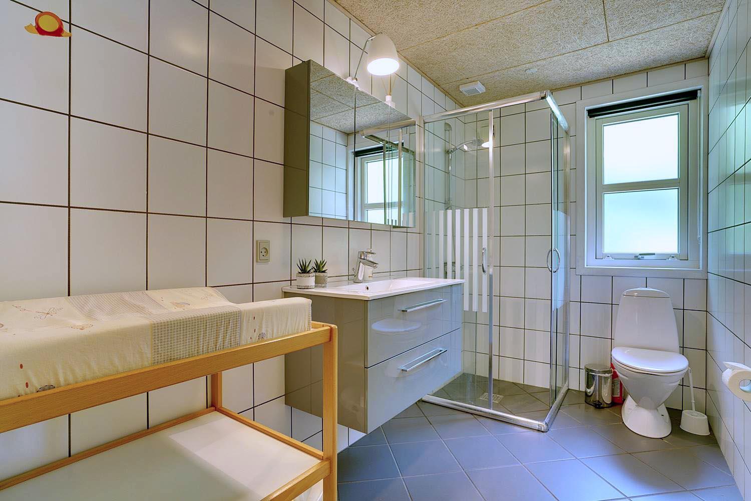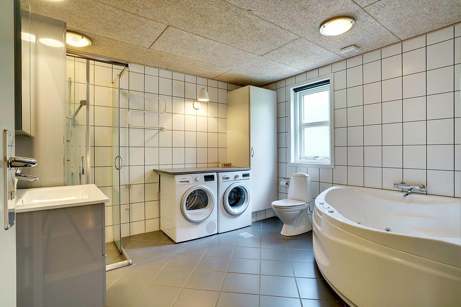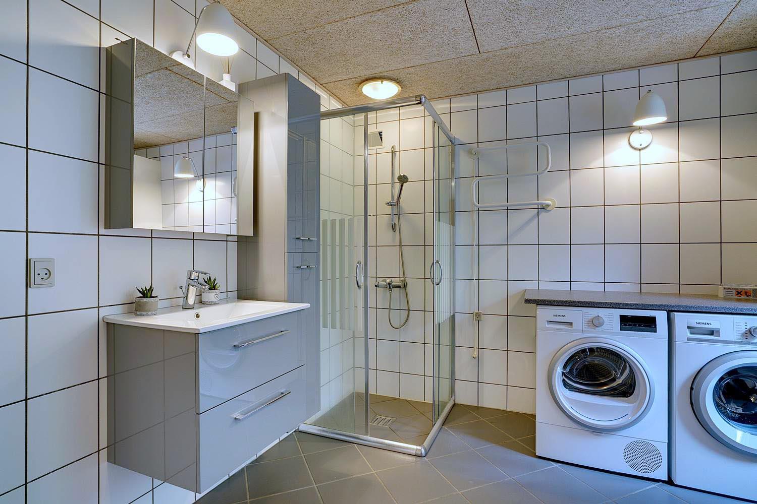 Praktiske faciliteter som vaskemaskine, tørretumbler og pusleplads gør huset velegnet til børnefamilier og længere ophold.