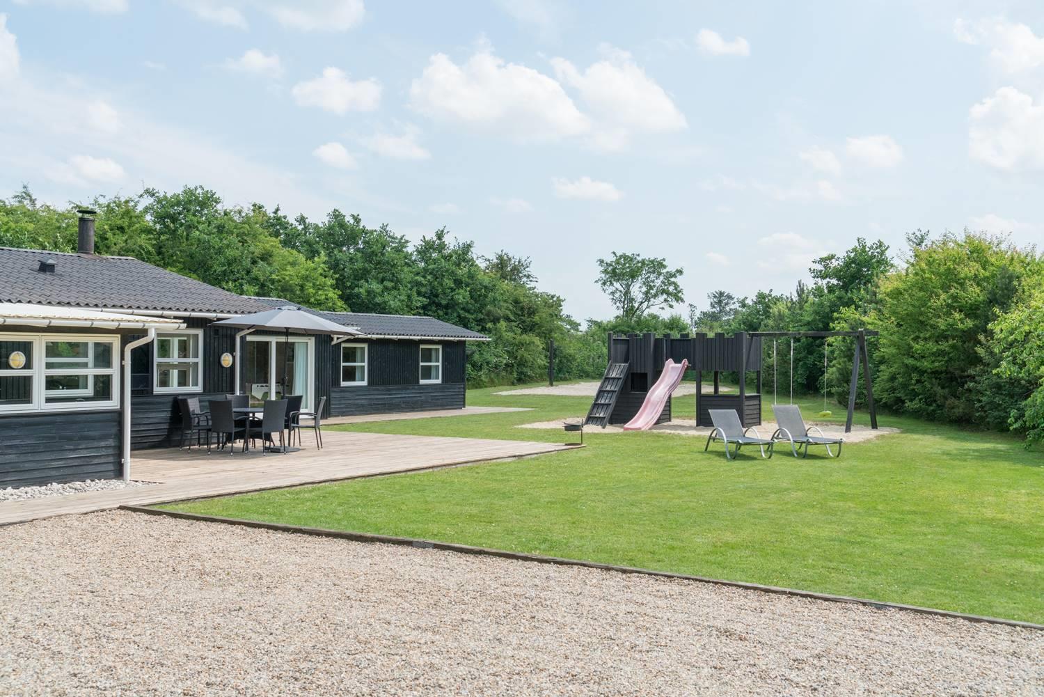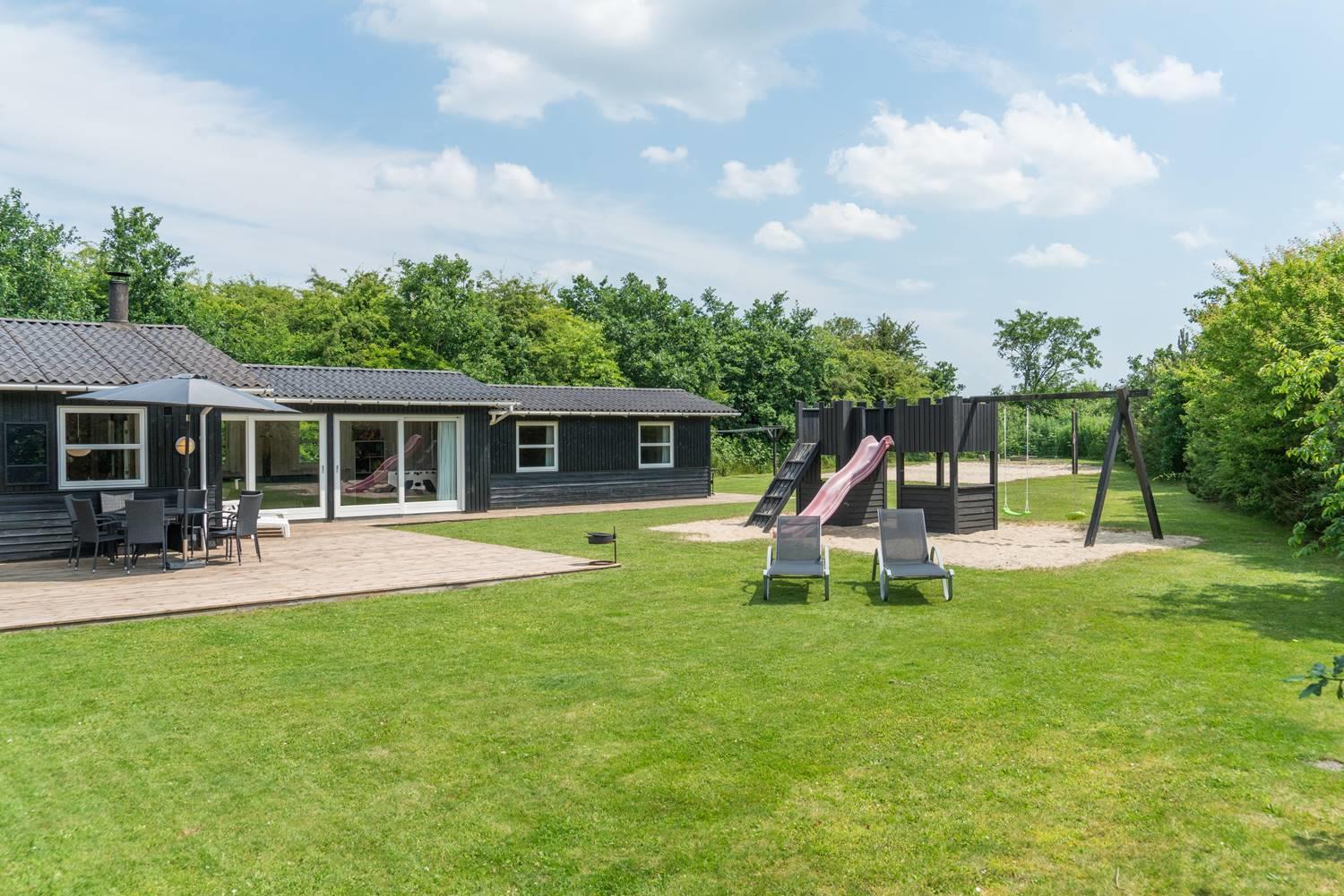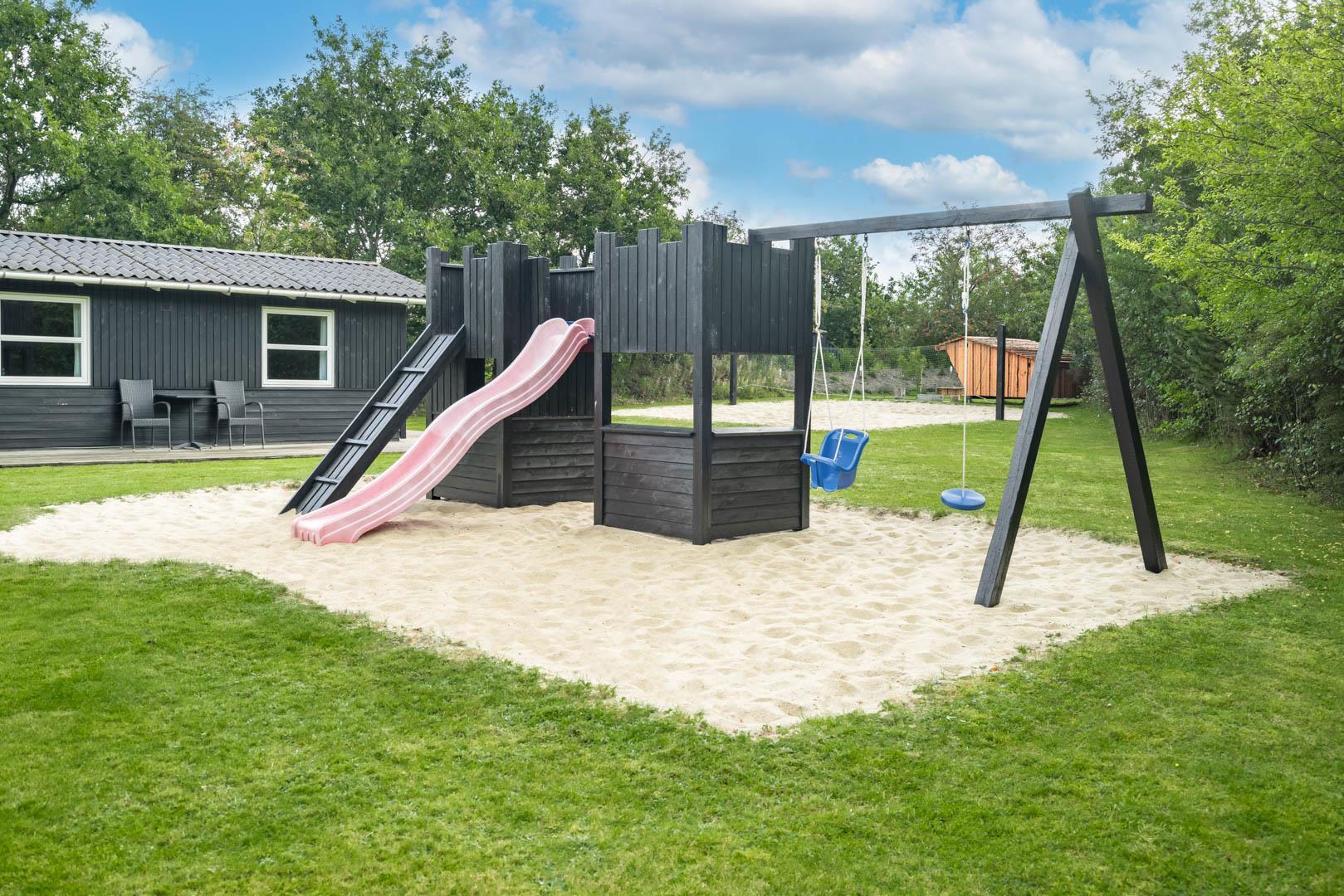 Til de yngste gæster er der både gynge og sandkasse, og haven giver god plads til leg og boldspil. Hunden er naturligvis også velkommen og vil elske de grønne omgivelser.
