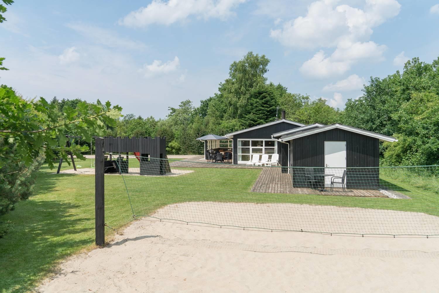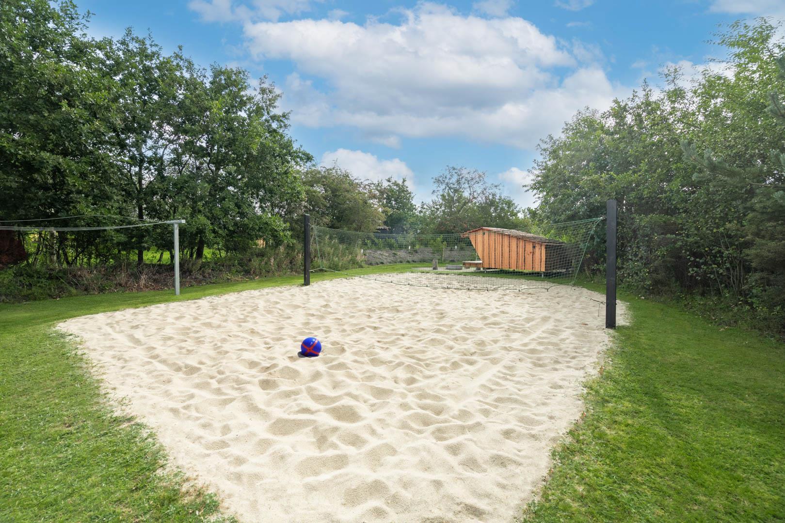 Husets volleyballbane inviterer til aktiv ferie med sjove kampe i det fri – en oplagt måde at kombinere bevægelse og feriestemning.
