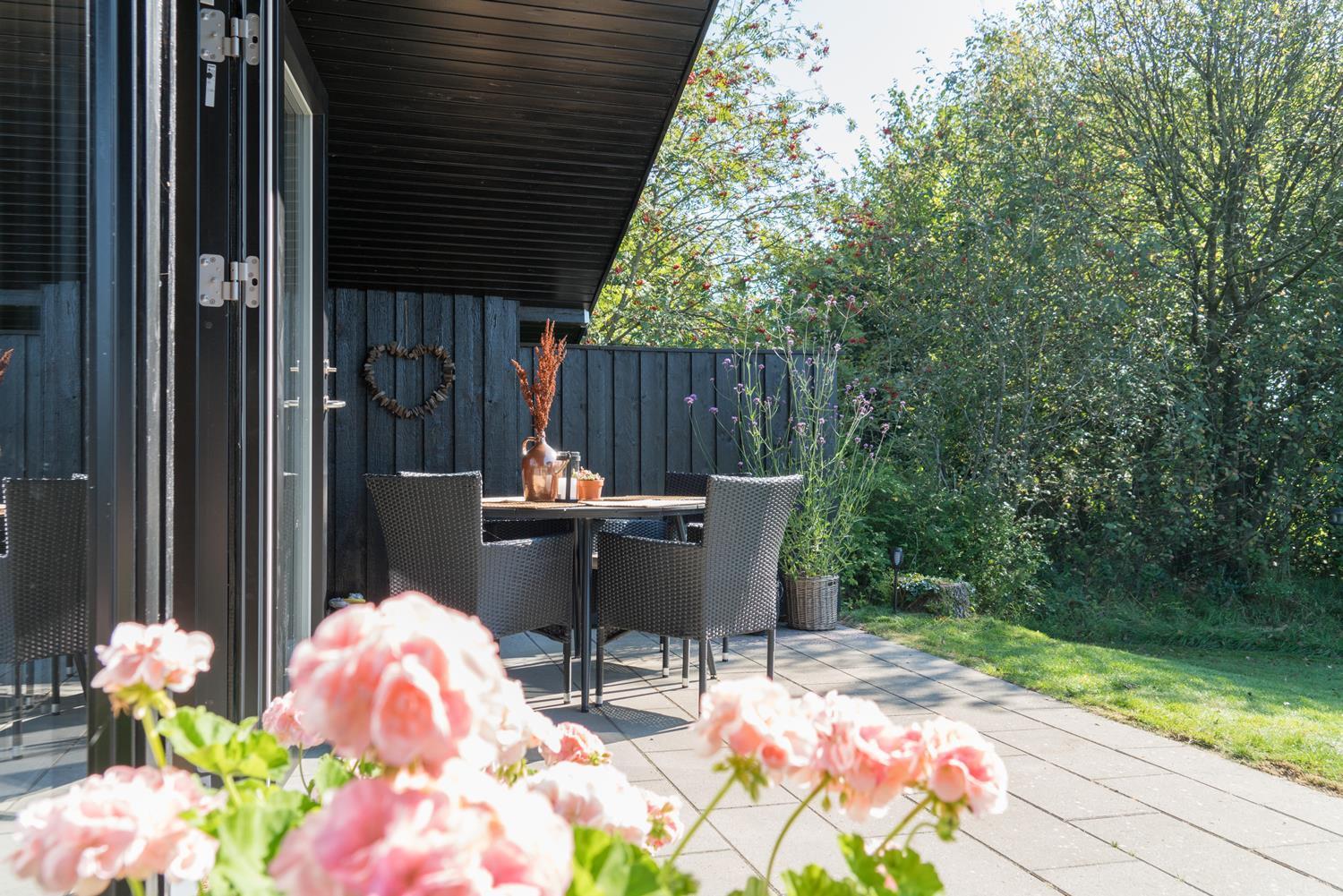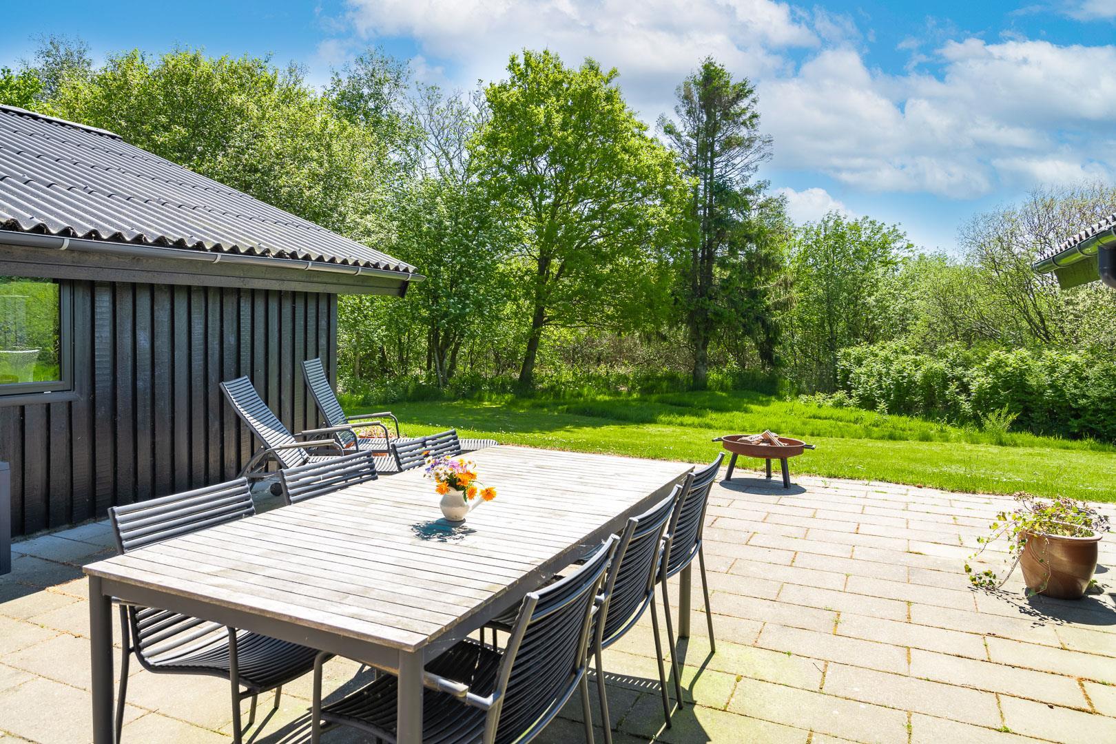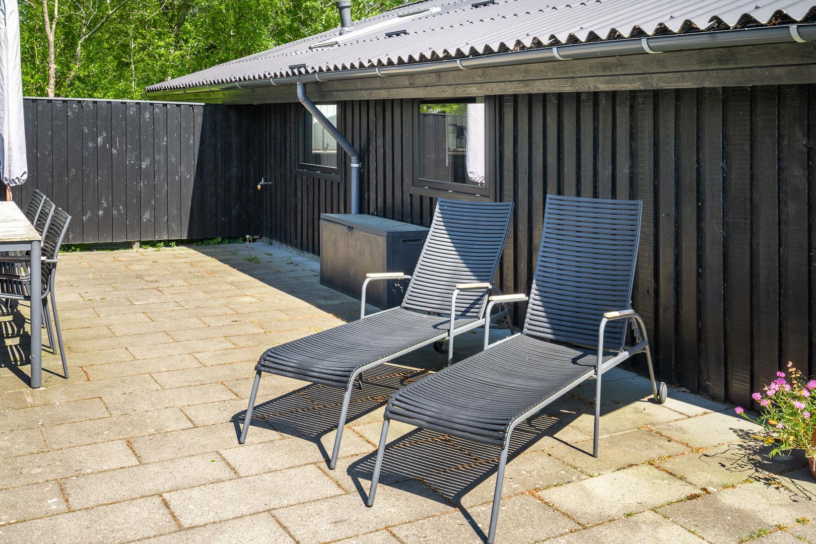 Den overdækkede terrasse indbyder til hyggelige stunder – uanset om det er morgenkaffen i solen eller aftensmaden i ly for vinden. Terrassen bliver hurtigt et naturligt samlingspunkt under ferien.