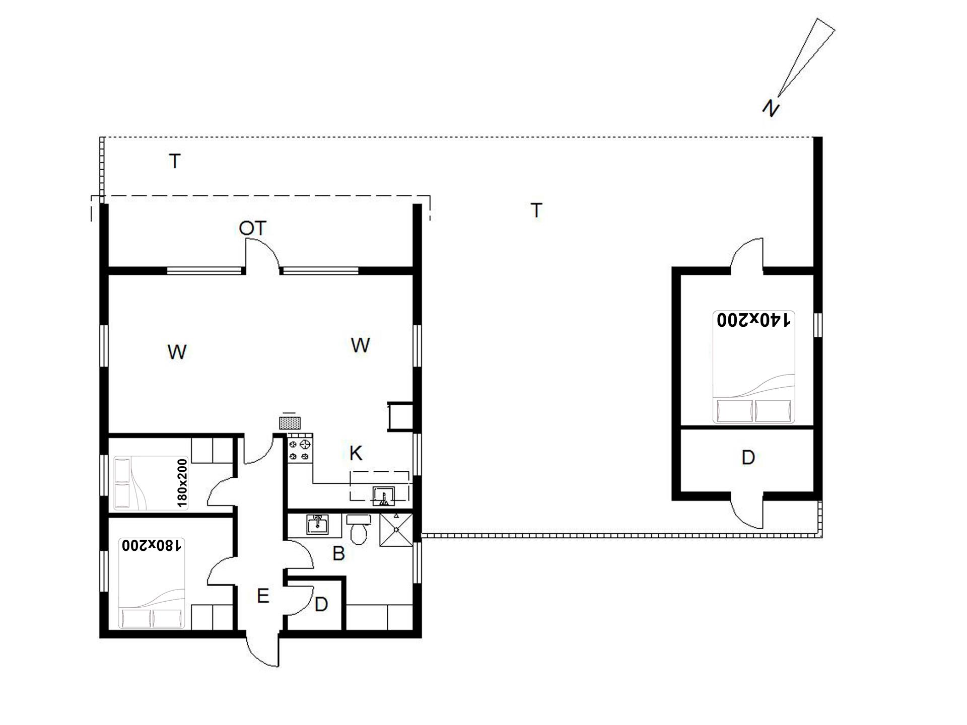 Sengestørrelse: 2 dobbeltsenge 180 x 200 cm + 1 dobbeltseng 140 x 200 cm.