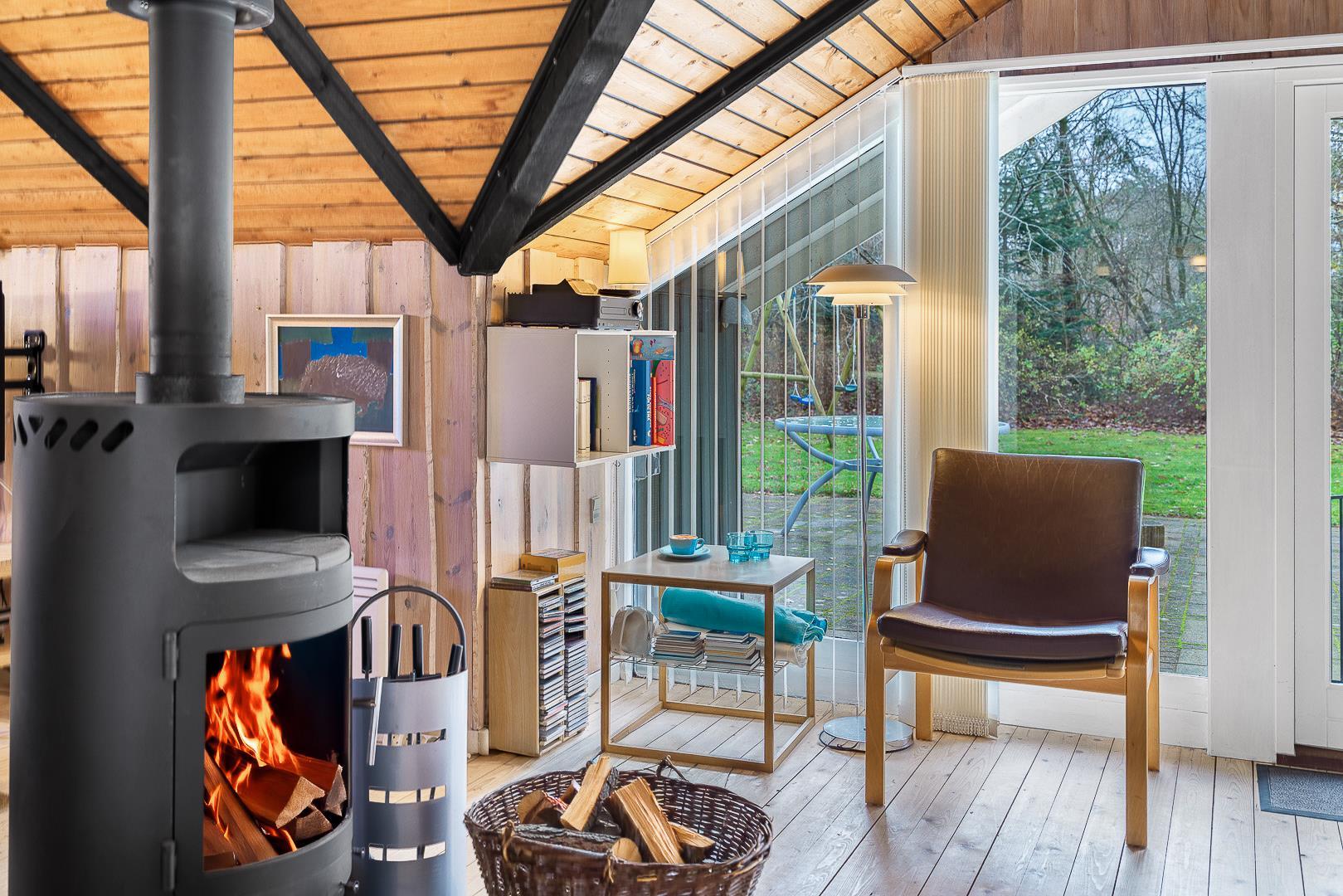Ægte hygge med brændeovn, varmepumpe og åbent opholdsrum