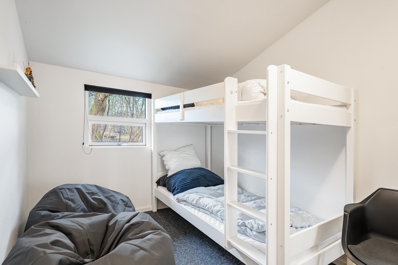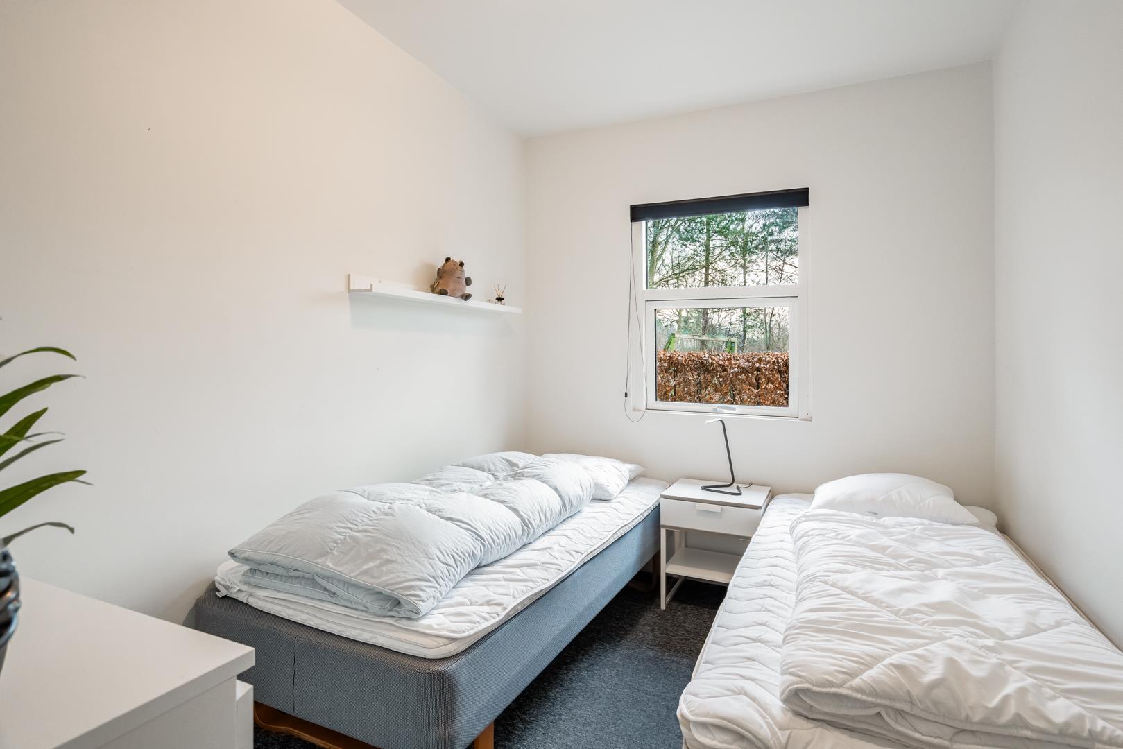 Med fire separate soveværelser er der rig mulighed for både fællesskab og privatliv, hvilket gør sommerhuset ideelt til en afslappende ferie ved Vesterhavet.