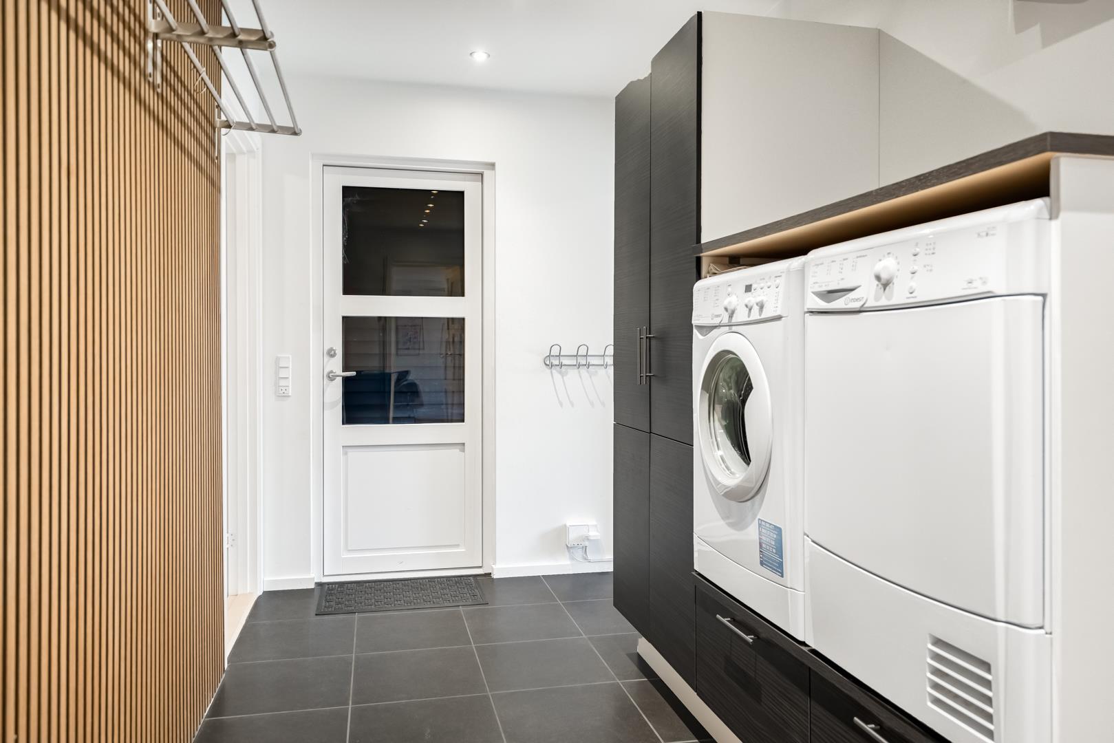 Sommerhuset er praktisk og funktionel indrettet. Køkkenet er udstyret med opvaskemaskine, og både vaskemaskine og tørretumbler gør opholdet ekstra bekvemt – især ved længere ferier. En energivenlig varmepumpe sikrer et behageligt indeklima året rundt, og badeværelset med gulvvarme giver ekstra komfort i hverdagen.