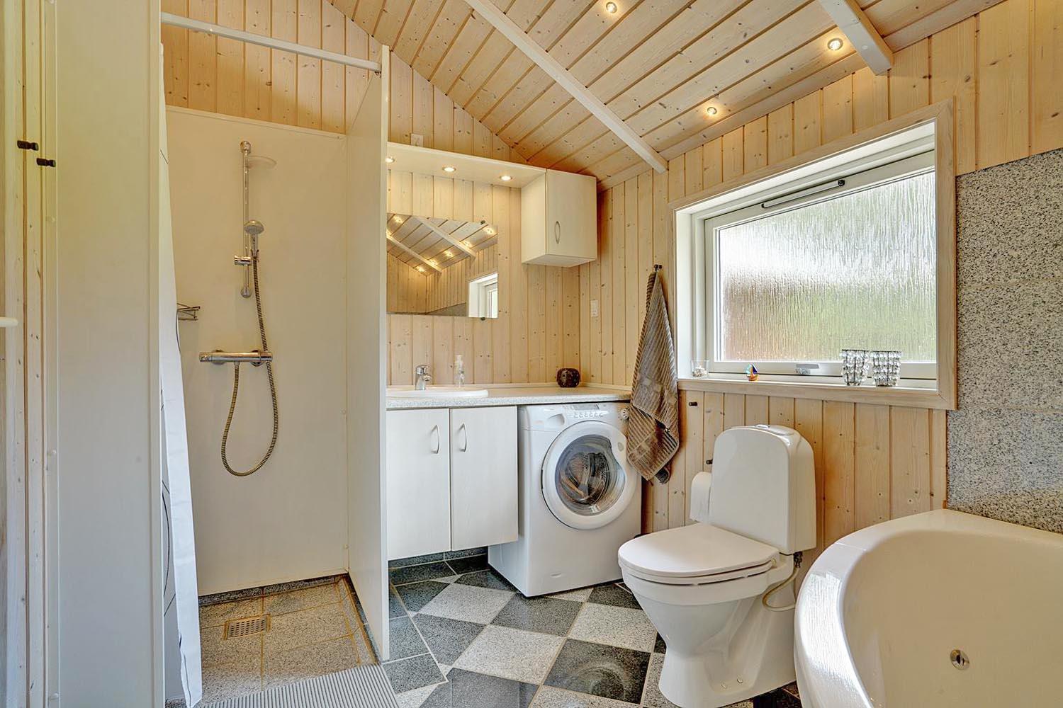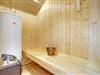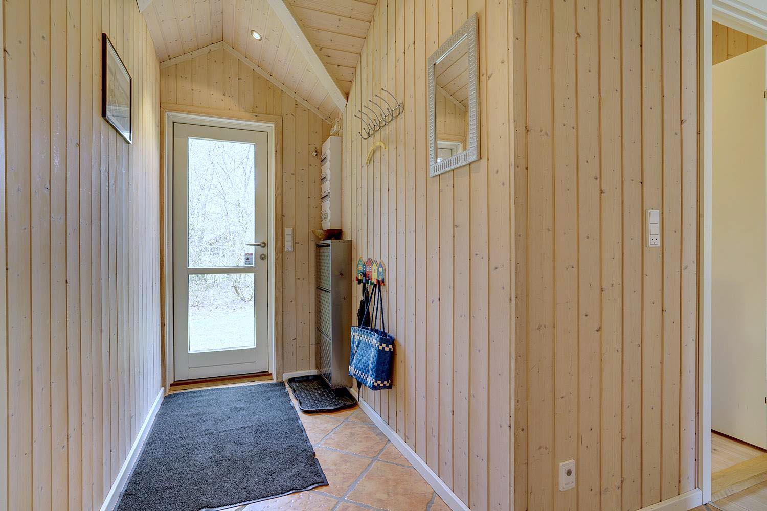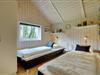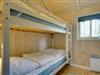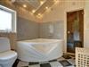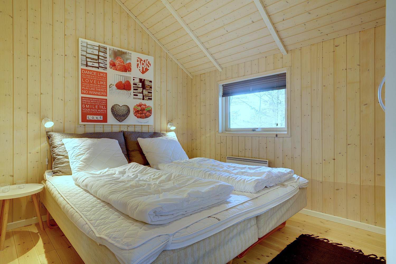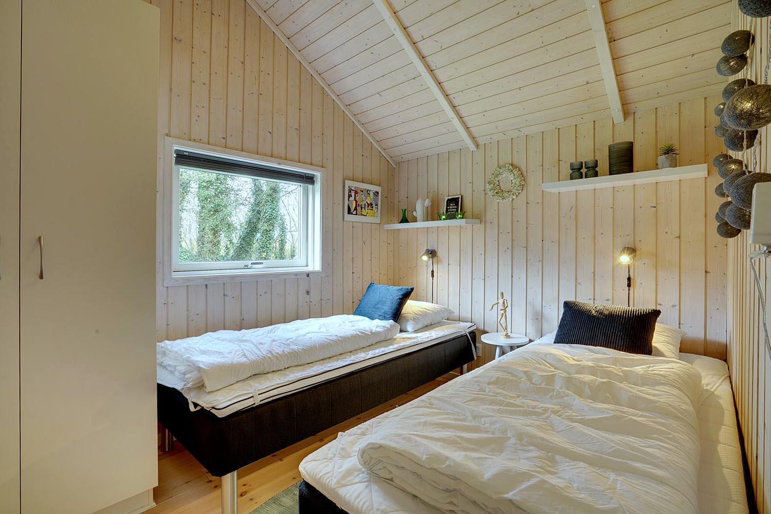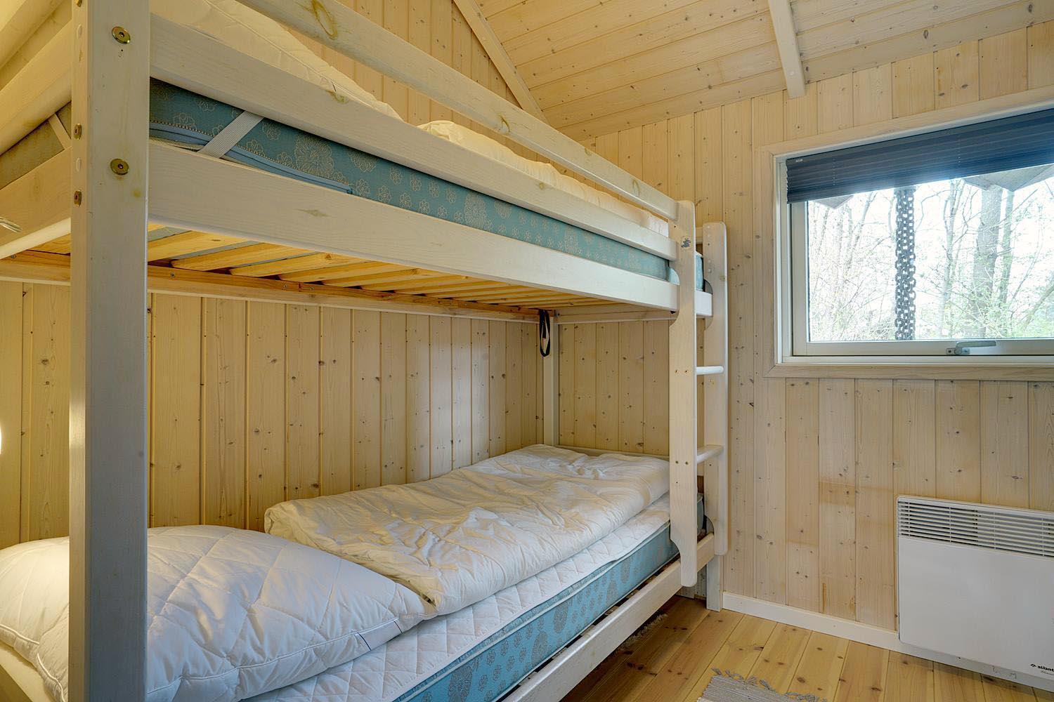 Sommerhuset har tre soveværelser – ét med dobbeltseng, ét med to enkeltsenge og ét med køjeseng, som især børnene vil elske. Badeværelset fungerer som en lille wellness-oase med gulvvarme, spa og sauna – det perfekte sted at slappe af efter en dag ved havet eller en gåtur i skoven.